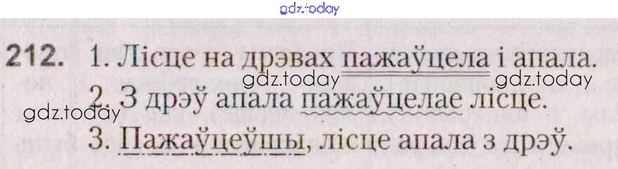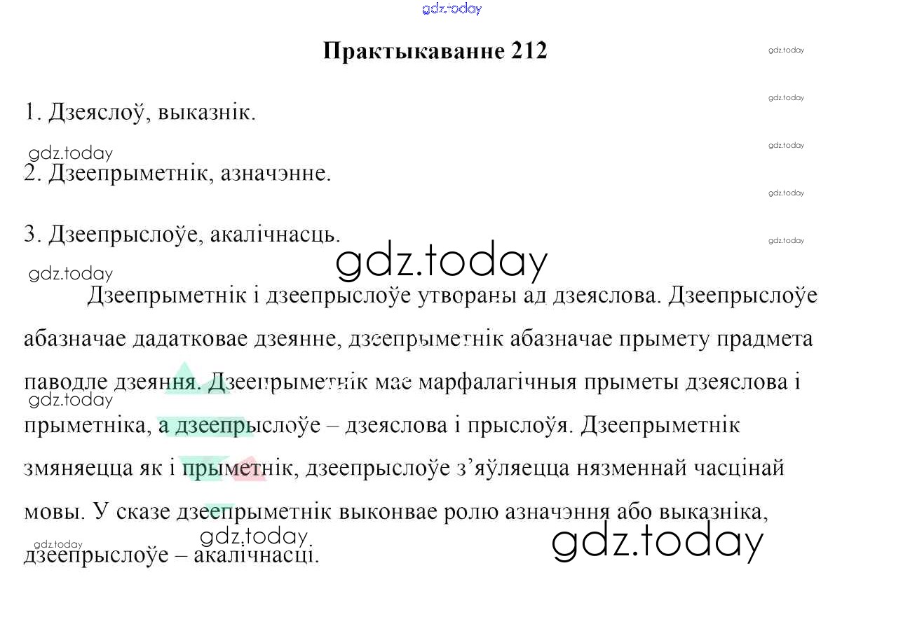 На страницах сайта gdz.today вы найдете учебный и вспомогательный материал, направленный на улучшения знаний школьной программы. ГДЗ - онлайн мир знаний Практыкаванні 212 Учебнику по Белорусскому языку для 7 класса Валочка, Язерская Национальный институт образования 2020
