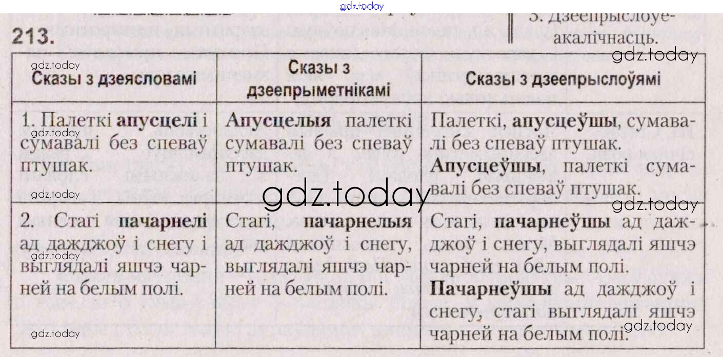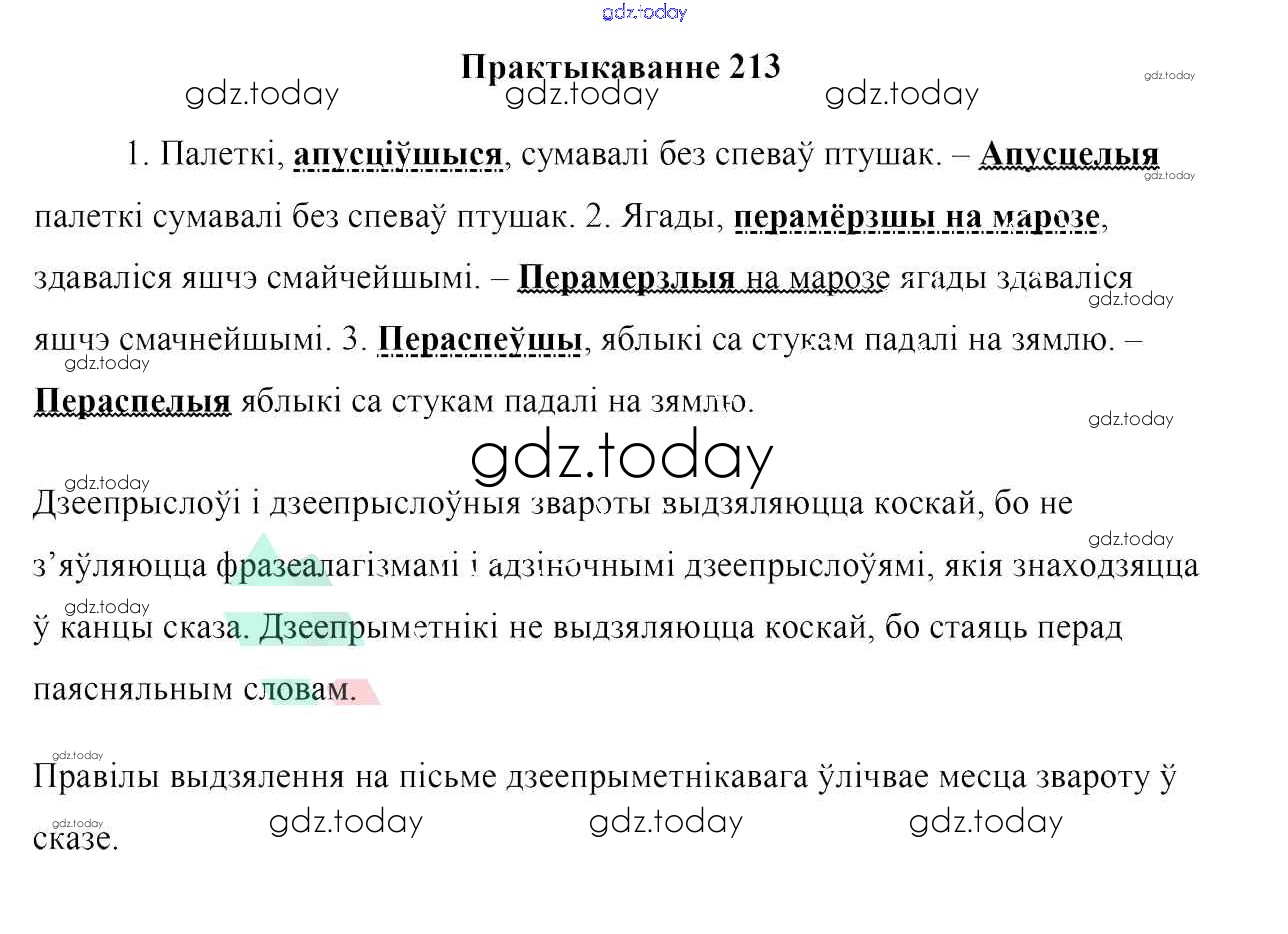 На страницах сайта gdz.today вы найдете учебный и вспомогательный материал, направленный на улучшения знаний школьной программы. ГДЗ - онлайн мир знаний Практыкаванні 213 Учебнику по Белорусскому языку для 7 класса Валочка, Язерская Национальный институт образования 2020