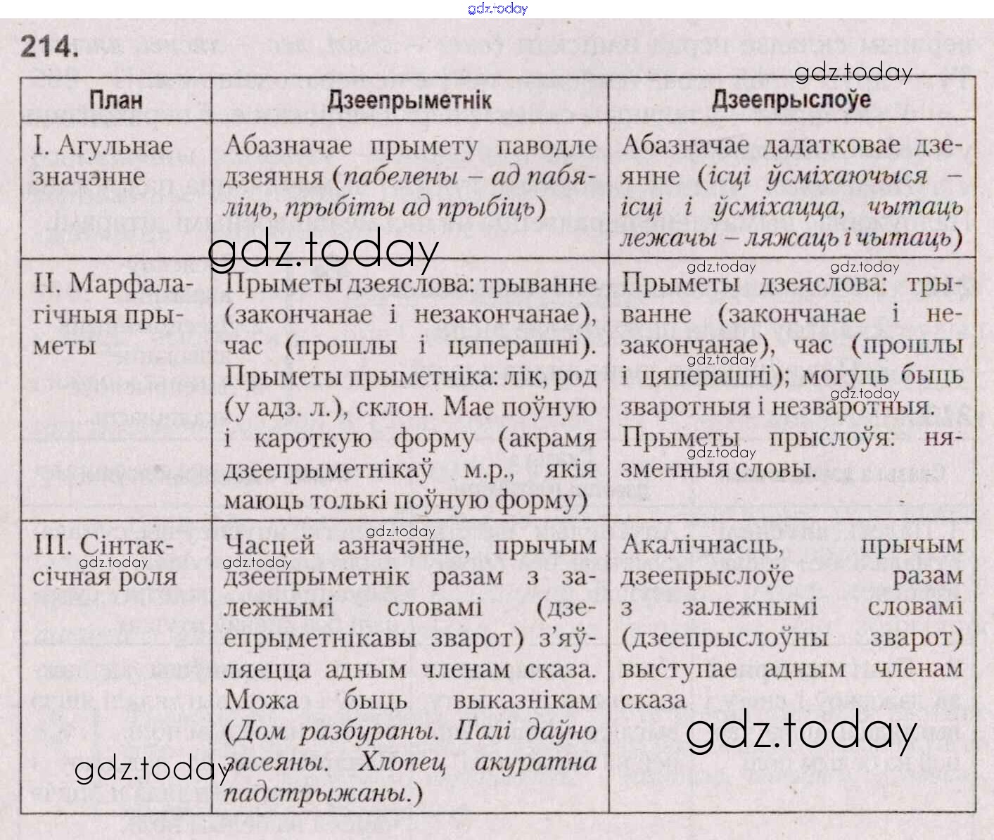 На страницах сайта gdz.today вы найдете учебный и вспомогательный материал, направленный на улучшения знаний школьной программы. ГДЗ - онлайн мир знаний Практыкаванні 214 Учебнику по Белорусскому языку для 7 класса Валочка, Язерская Национальный институт образования 2020