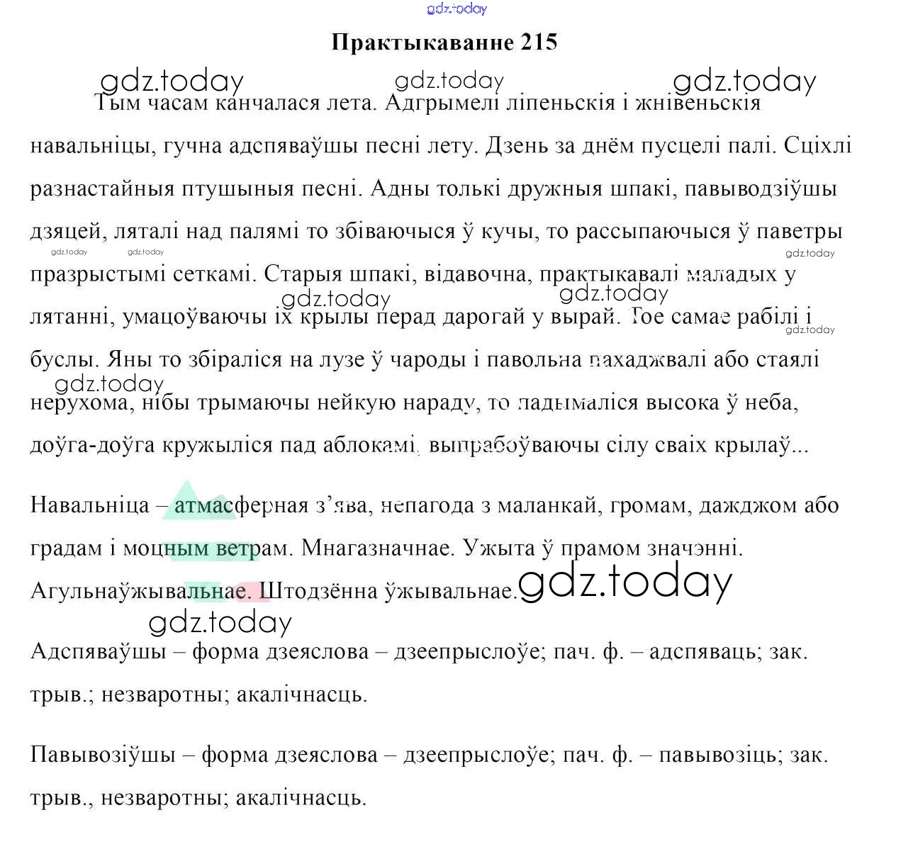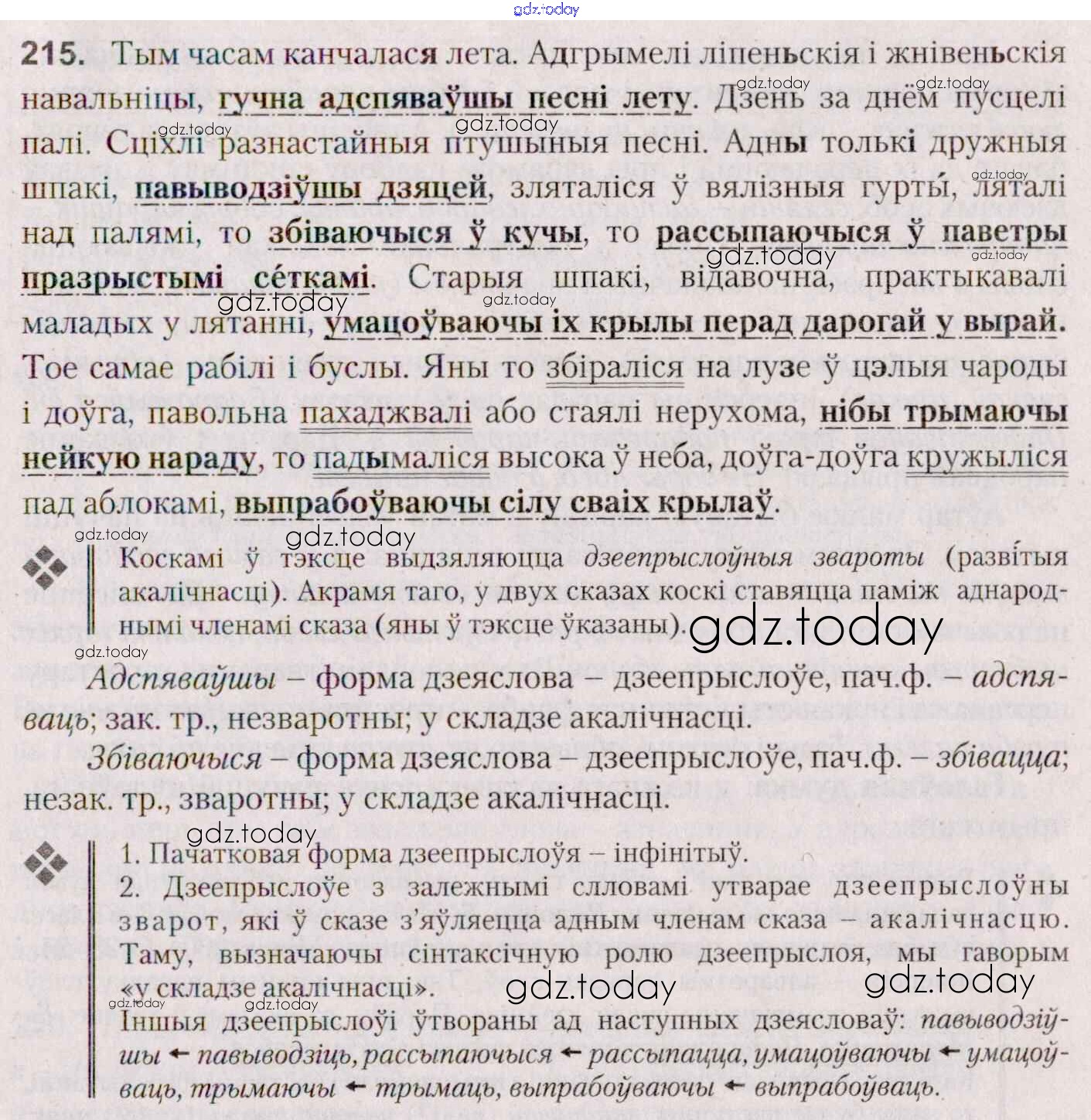 На страницах сайта gdz.today вы найдете учебный и вспомогательный материал, направленный на улучшения знаний школьной программы. ГДЗ - онлайн мир знаний Практыкаванні 215 Учебнику по Белорусскому языку для 7 класса Валочка, Язерская Национальный институт образования 2020