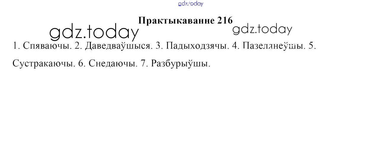 На страницах сайта gdz.today вы найдете учебный и вспомогательный материал, направленный на улучшения знаний школьной программы. ГДЗ - онлайн мир знаний Практыкаванні 216 Учебнику по Белорусскому языку для 7 класса Валочка, Язерская Национальный институт образования 2020