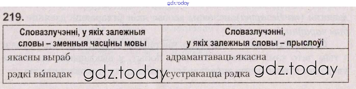 На страницах сайта gdz.today вы найдете учебный и вспомогательный материал, направленный на улучшения знаний школьной программы. ГДЗ - онлайн мир знаний Практыкаванні 219 Учебнику по Белорусскому языку для 7 класса Валочка, Язерская Национальный институт образования 2020