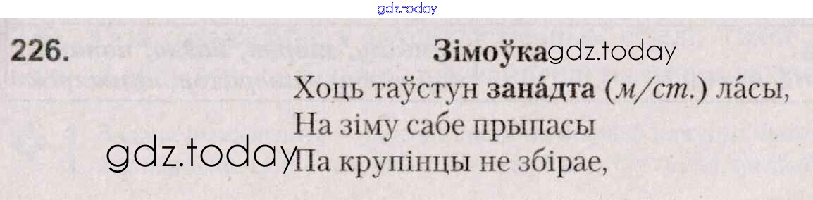 На страницах сайта gdz.today вы найдете учебный и вспомогательный материал, направленный на улучшения знаний школьной программы. ГДЗ - онлайн мир знаний Практыкаванні 226 Учебнику по Белорусскому языку для 7 класса Валочка, Язерская Национальный институт образования 2020