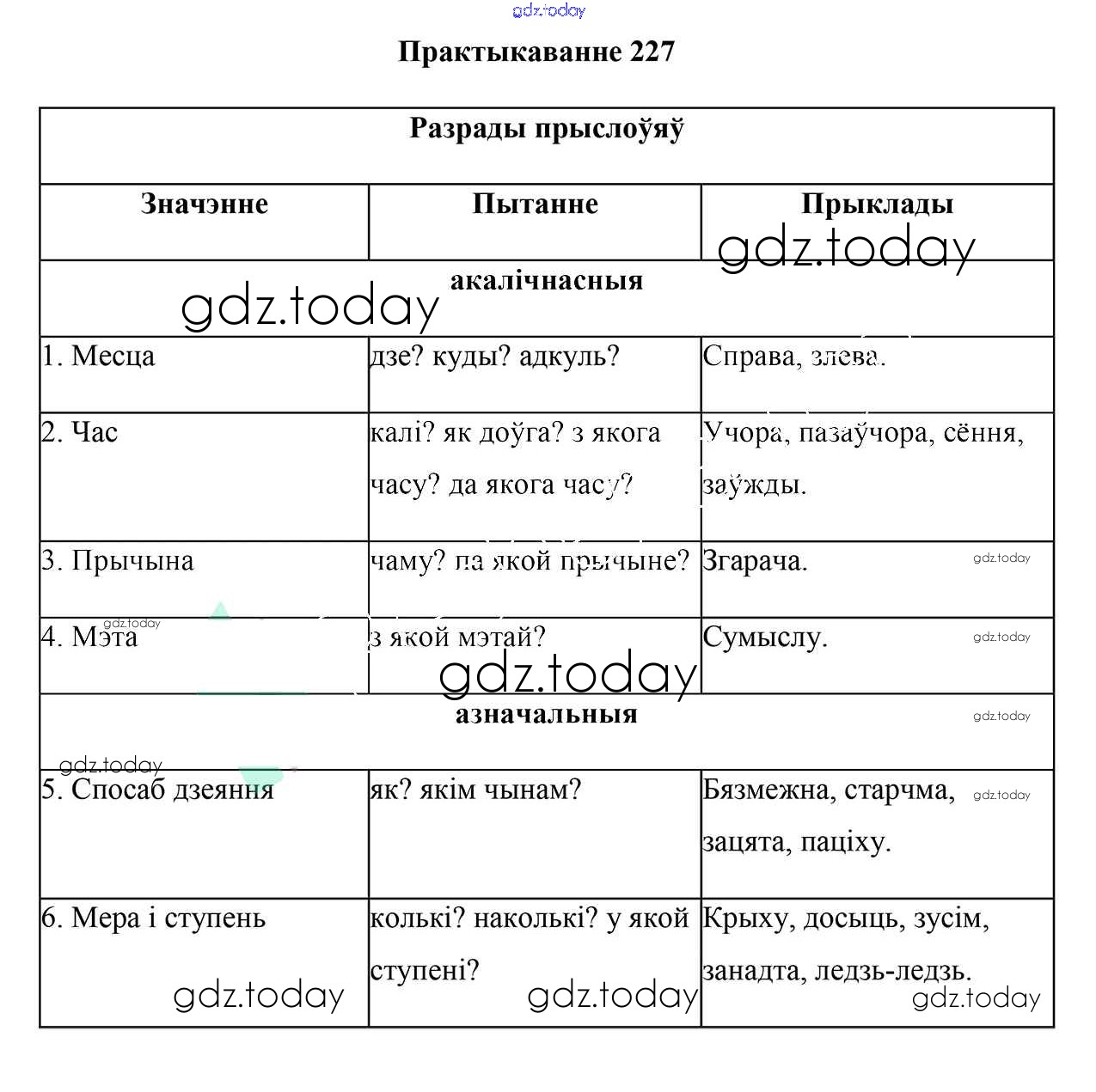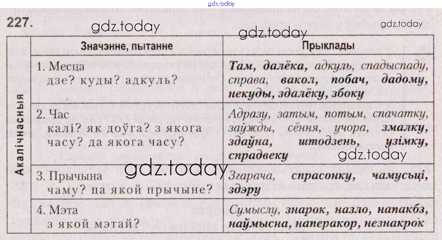 На страницах сайта gdz.today вы найдете учебный и вспомогательный материал, направленный на улучшения знаний школьной программы. ГДЗ - онлайн мир знаний Практыкаванні 227 Учебнику по Белорусскому языку для 7 класса Валочка, Язерская Национальный институт образования 2020