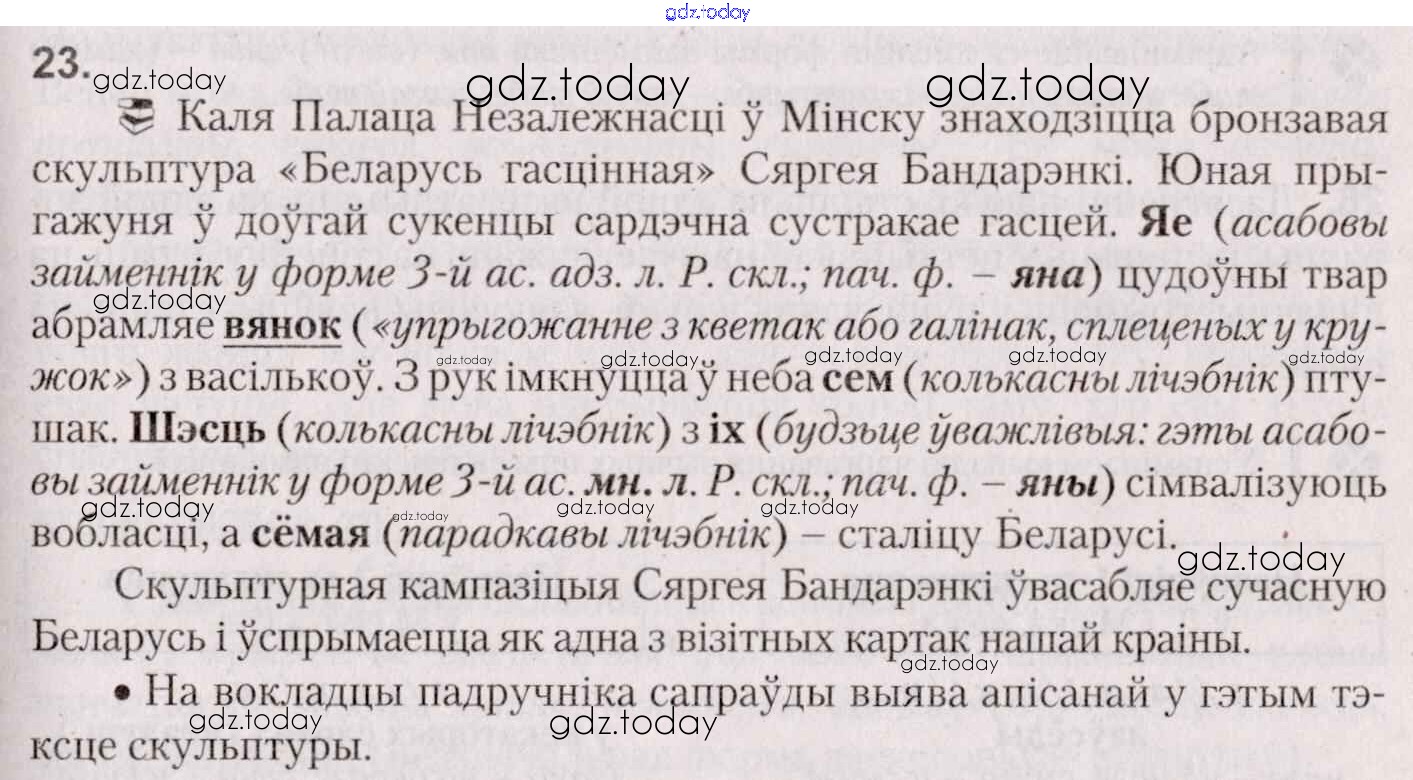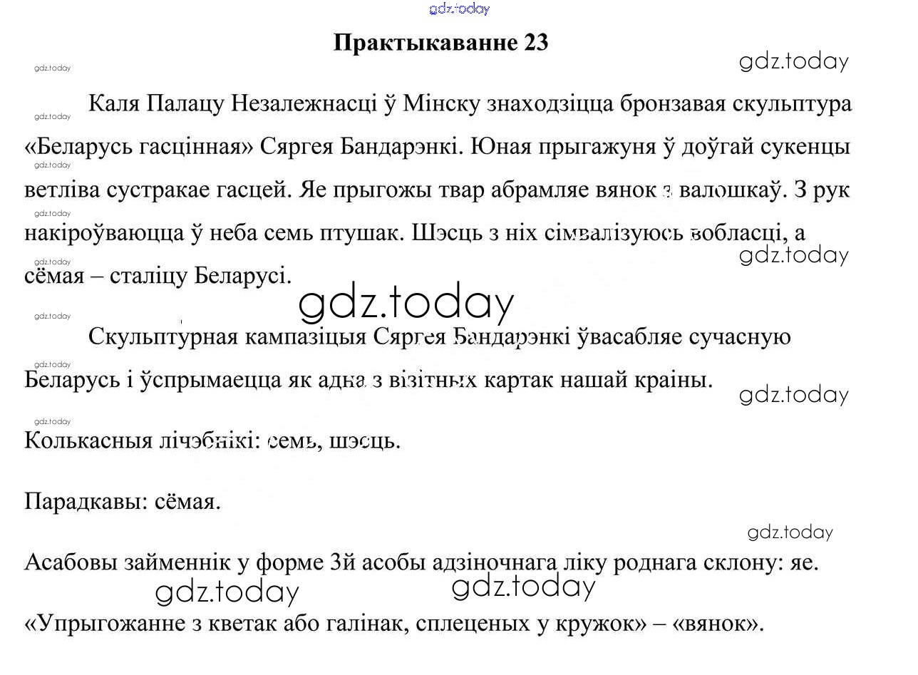 На страницах сайта gdz.today вы найдете учебный и вспомогательный материал, направленный на улучшения знаний школьной программы. ГДЗ - онлайн мир знаний Практыкаванні 23 Учебнику по Белорусскому языку для 7 класса Валочка, Язерская Национальный институт образования 2020