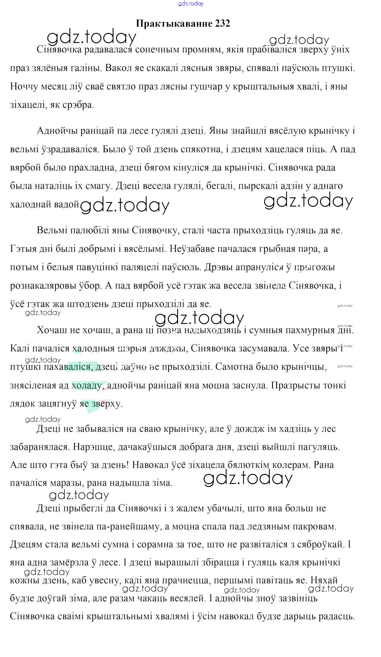 На страницах сайта gdz.today вы найдете учебный и вспомогательный материал, направленный на улучшения знаний школьной программы. ГДЗ - онлайн мир знаний Практыкаванні 232 Учебнику по Белорусскому языку для 7 класса Валочка, Язерская Национальный институт образования 2020