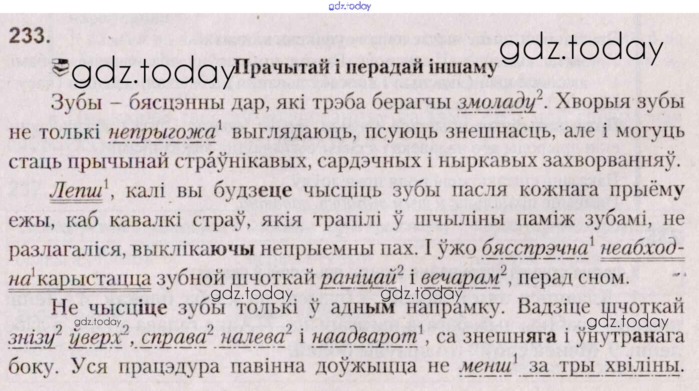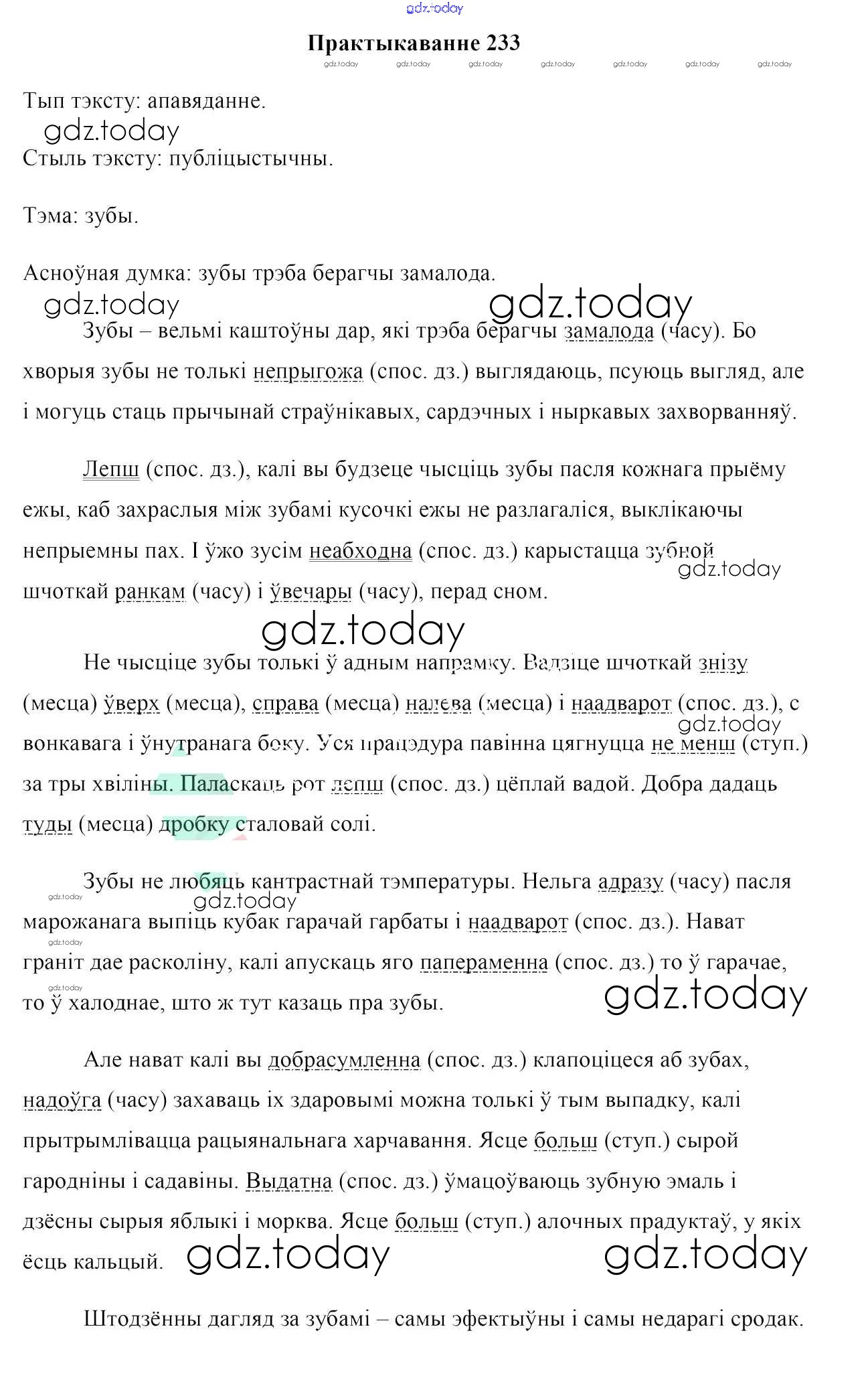На страницах сайта gdz.today вы найдете учебный и вспомогательный материал, направленный на улучшения знаний школьной программы. ГДЗ - онлайн мир знаний Практыкаванні 233 Учебнику по Белорусскому языку для 7 класса Валочка, Язерская Национальный институт образования 2020