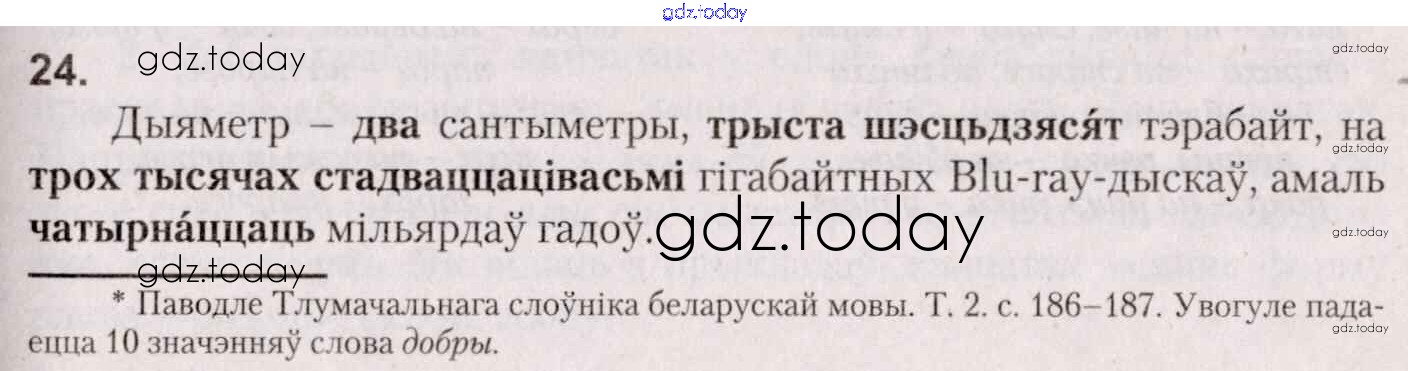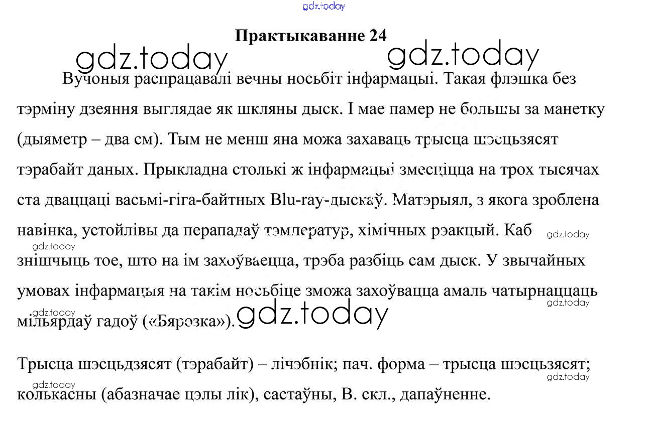 На страницах сайта gdz.today вы найдете учебный и вспомогательный материал, направленный на улучшения знаний школьной программы. ГДЗ - онлайн мир знаний Практыкаванні 24 Учебнику по Белорусскому языку для 7 класса Валочка, Язерская Национальный институт образования 2020