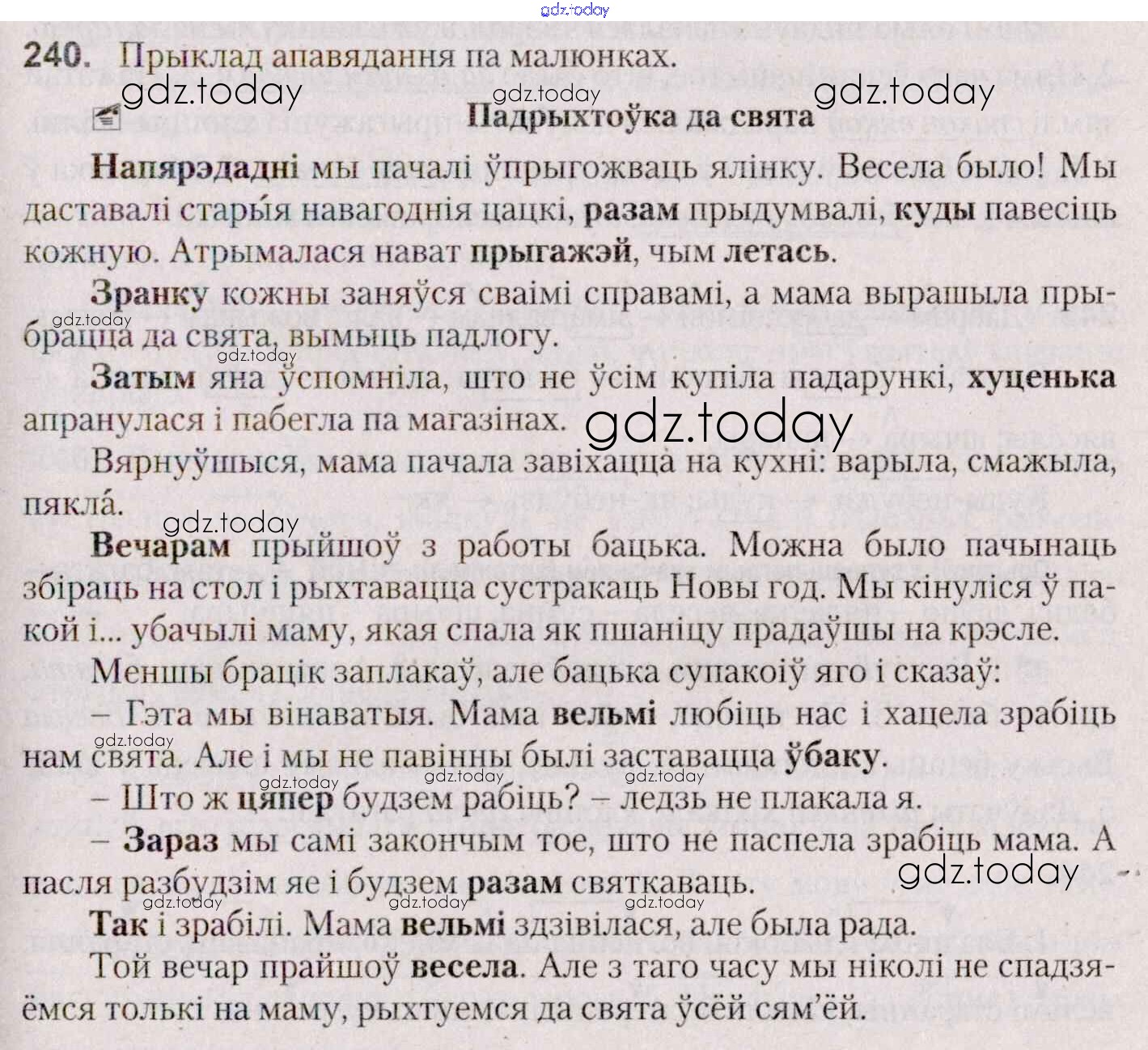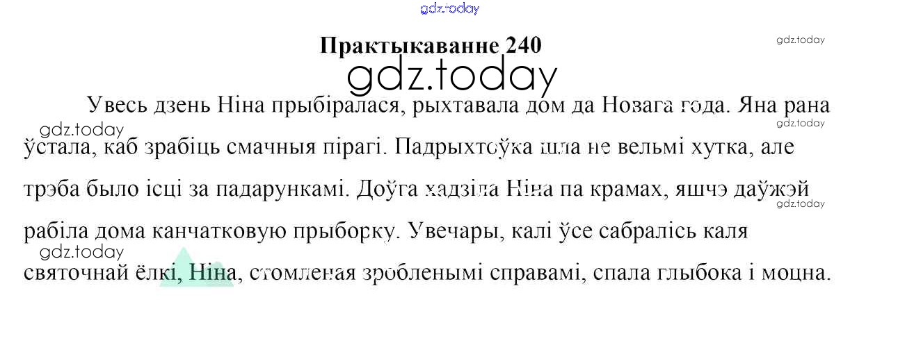 На страницах сайта gdz.today вы найдете учебный и вспомогательный материал, направленный на улучшения знаний школьной программы. ГДЗ - онлайн мир знаний Практыкаванні 240 Учебнику по Белорусскому языку для 7 класса Валочка, Язерская Национальный институт образования 2020