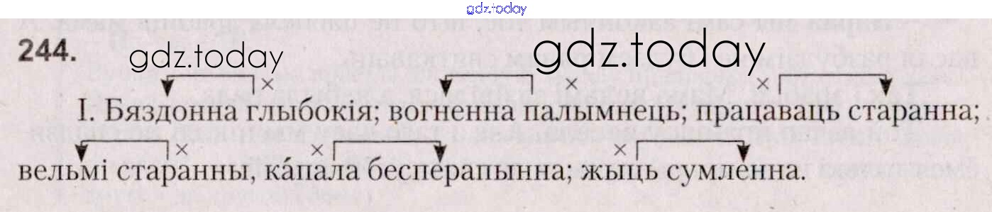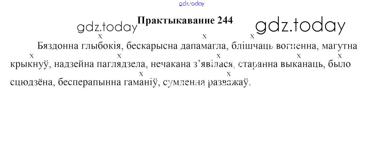 На страницах сайта gdz.today вы найдете учебный и вспомогательный материал, направленный на улучшения знаний школьной программы. ГДЗ - онлайн мир знаний Практыкаванні 244 Учебнику по Белорусскому языку для 7 класса Валочка, Язерская Национальный институт образования 2020