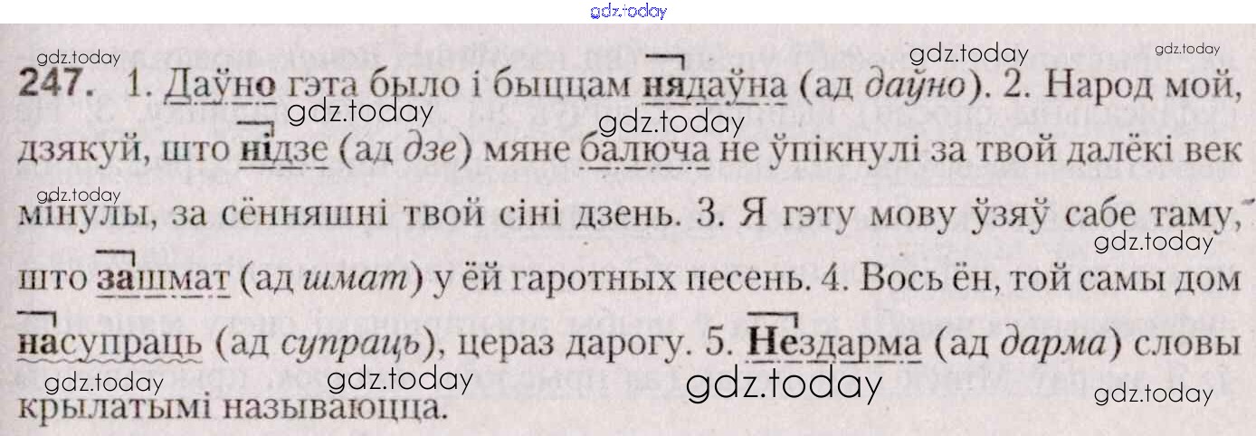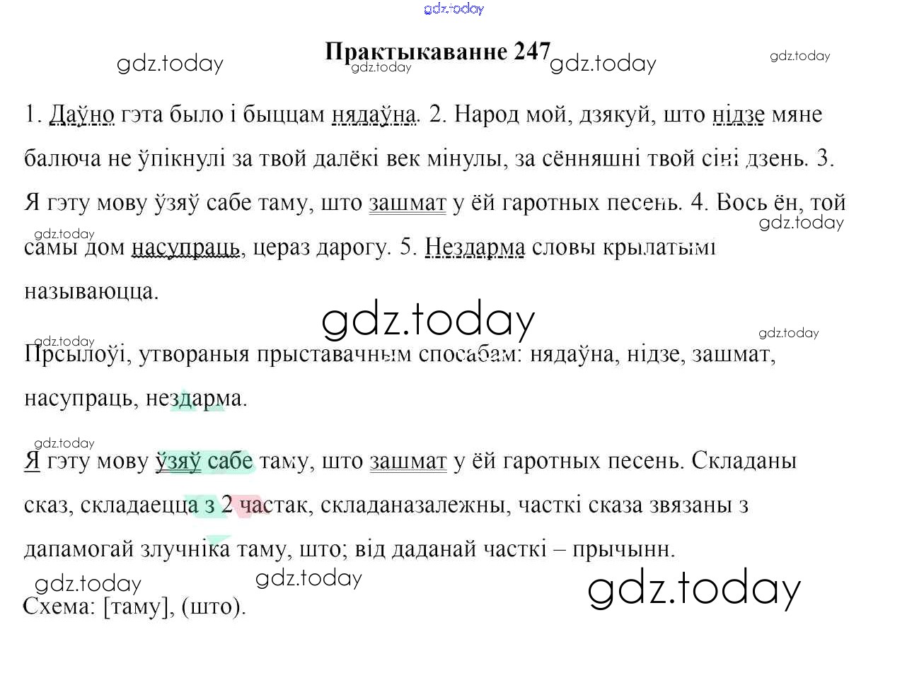 На страницах сайта gdz.today вы найдете учебный и вспомогательный материал, направленный на улучшения знаний школьной программы. ГДЗ - онлайн мир знаний Практыкаванні 247 Учебнику по Белорусскому языку для 7 класса Валочка, Язерская Национальный институт образования 2020