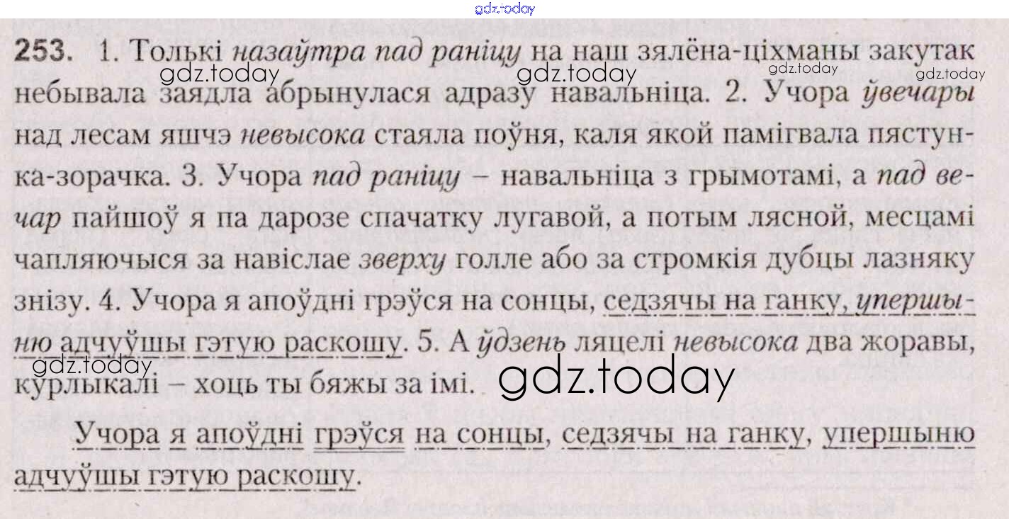 На страницах сайта gdz.today вы найдете учебный и вспомогательный материал, направленный на улучшения знаний школьной программы. ГДЗ - онлайн мир знаний Практыкаванні 253 Учебнику по Белорусскому языку для 7 класса Валочка, Язерская Национальный институт образования 2020