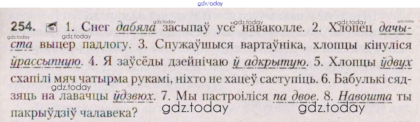 На страницах сайта gdz.today вы найдете учебный и вспомогательный материал, направленный на улучшения знаний школьной программы. ГДЗ - онлайн мир знаний Практыкаванні 254 Учебнику по Белорусскому языку для 7 класса Валочка, Язерская Национальный институт образования 2020