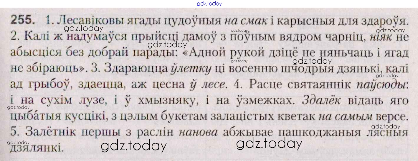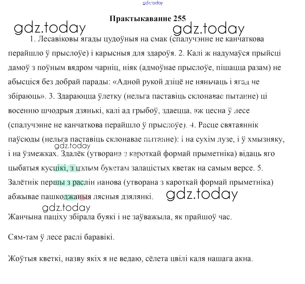 На страницах сайта gdz.today вы найдете учебный и вспомогательный материал, направленный на улучшения знаний школьной программы. ГДЗ - онлайн мир знаний Практыкаванні 255 Учебнику по Белорусскому языку для 7 класса Валочка, Язерская Национальный институт образования 2020