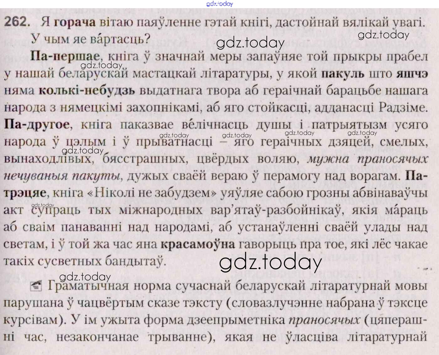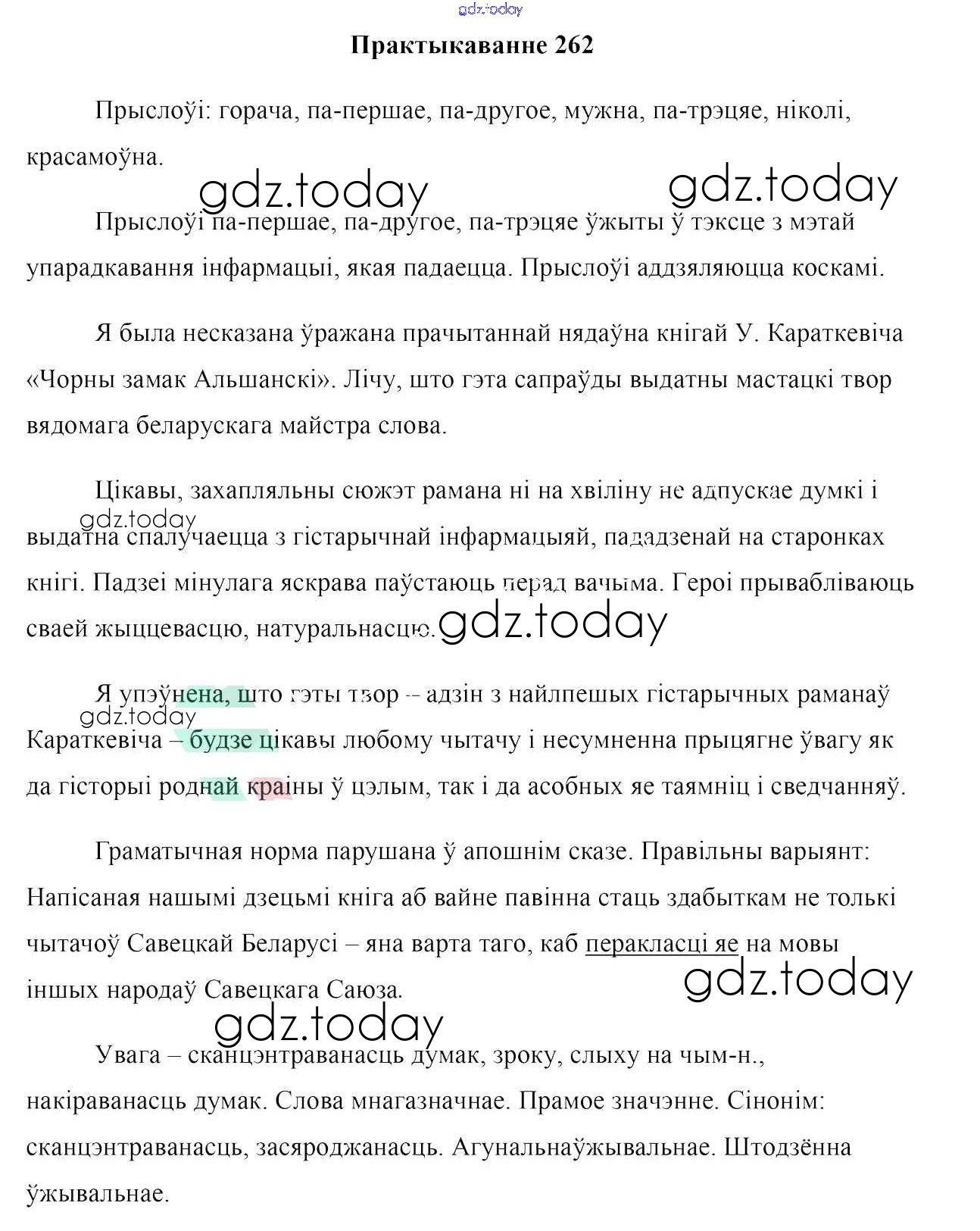 На страницах сайта gdz.today вы найдете учебный и вспомогательный материал, направленный на улучшения знаний школьной программы. ГДЗ - онлайн мир знаний Практыкаванні 262 Учебнику по Белорусскому языку для 7 класса Валочка, Язерская Национальный институт образования 2020