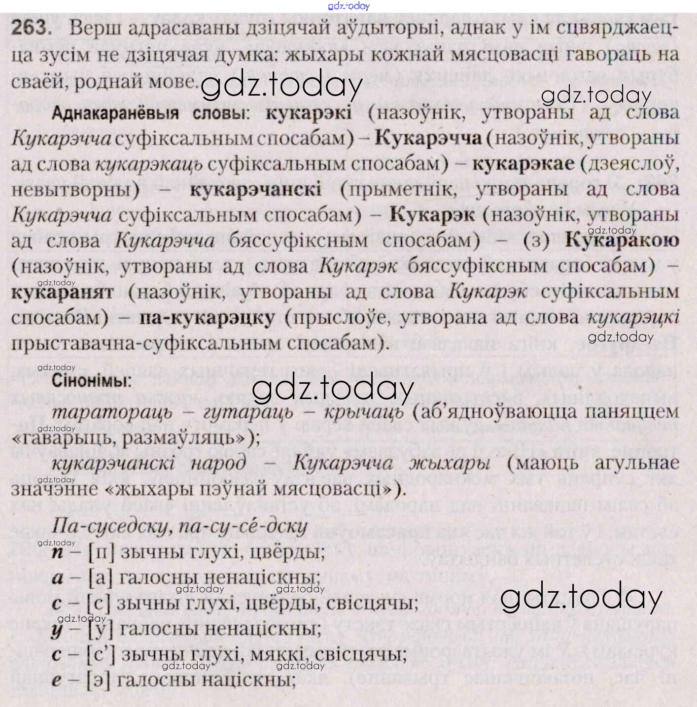 На страницах сайта gdz.today вы найдете учебный и вспомогательный материал, направленный на улучшения знаний школьной программы. ГДЗ - онлайн мир знаний Практыкаванні 263 Учебнику по Белорусскому языку для 7 класса Валочка, Язерская Национальный институт образования 2020