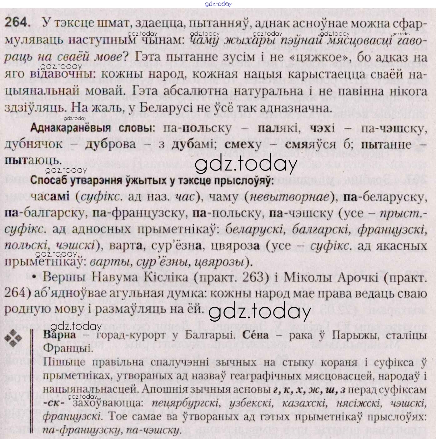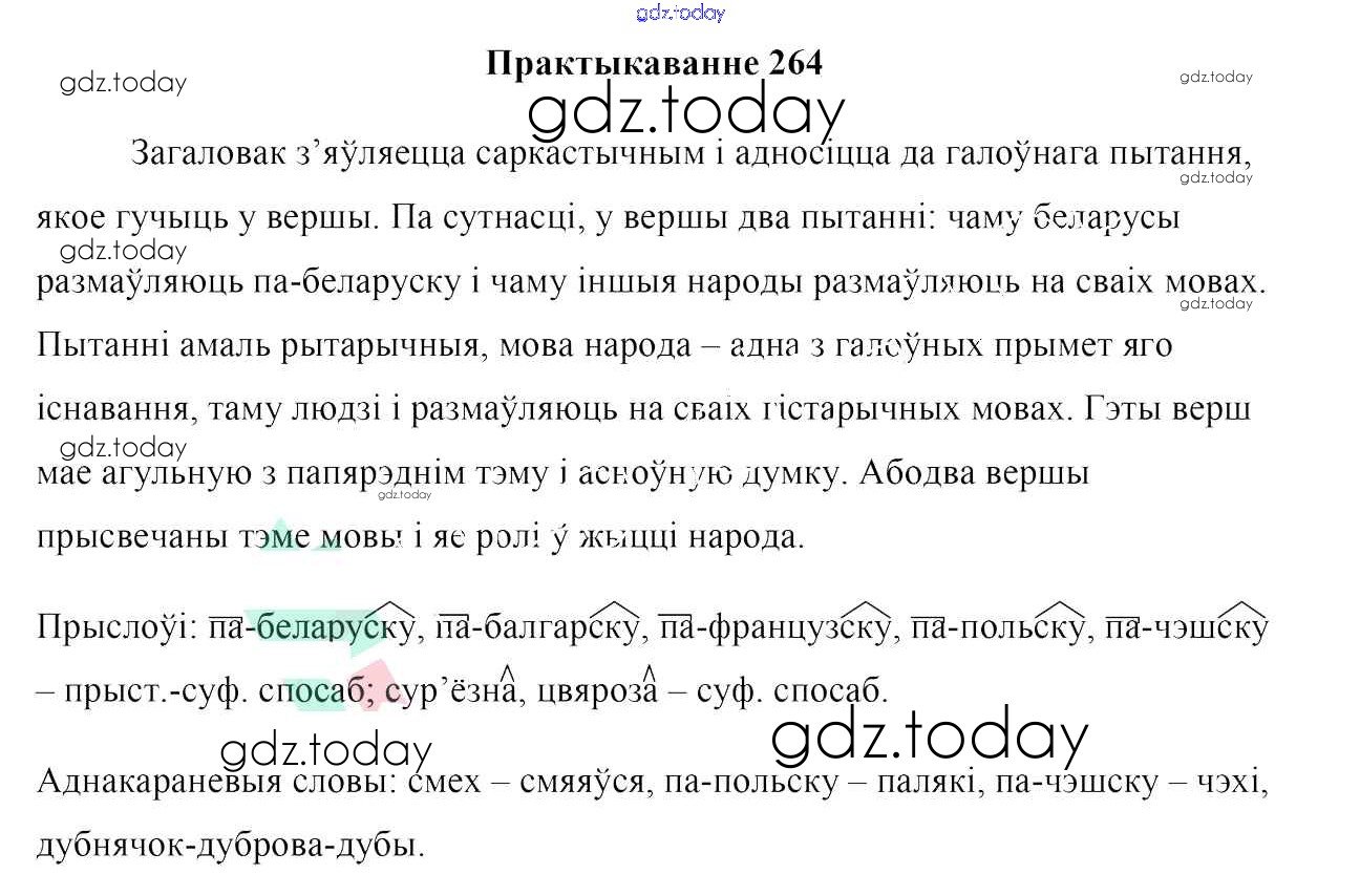 На страницах сайта gdz.today вы найдете учебный и вспомогательный материал, направленный на улучшения знаний школьной программы. ГДЗ - онлайн мир знаний Практыкаванні 264 Учебнику по Белорусскому языку для 7 класса Валочка, Язерская Национальный институт образования 2020