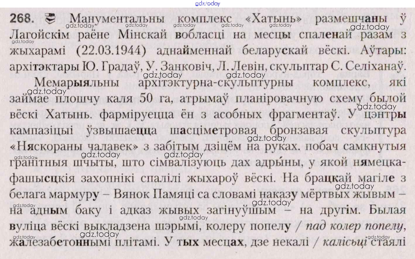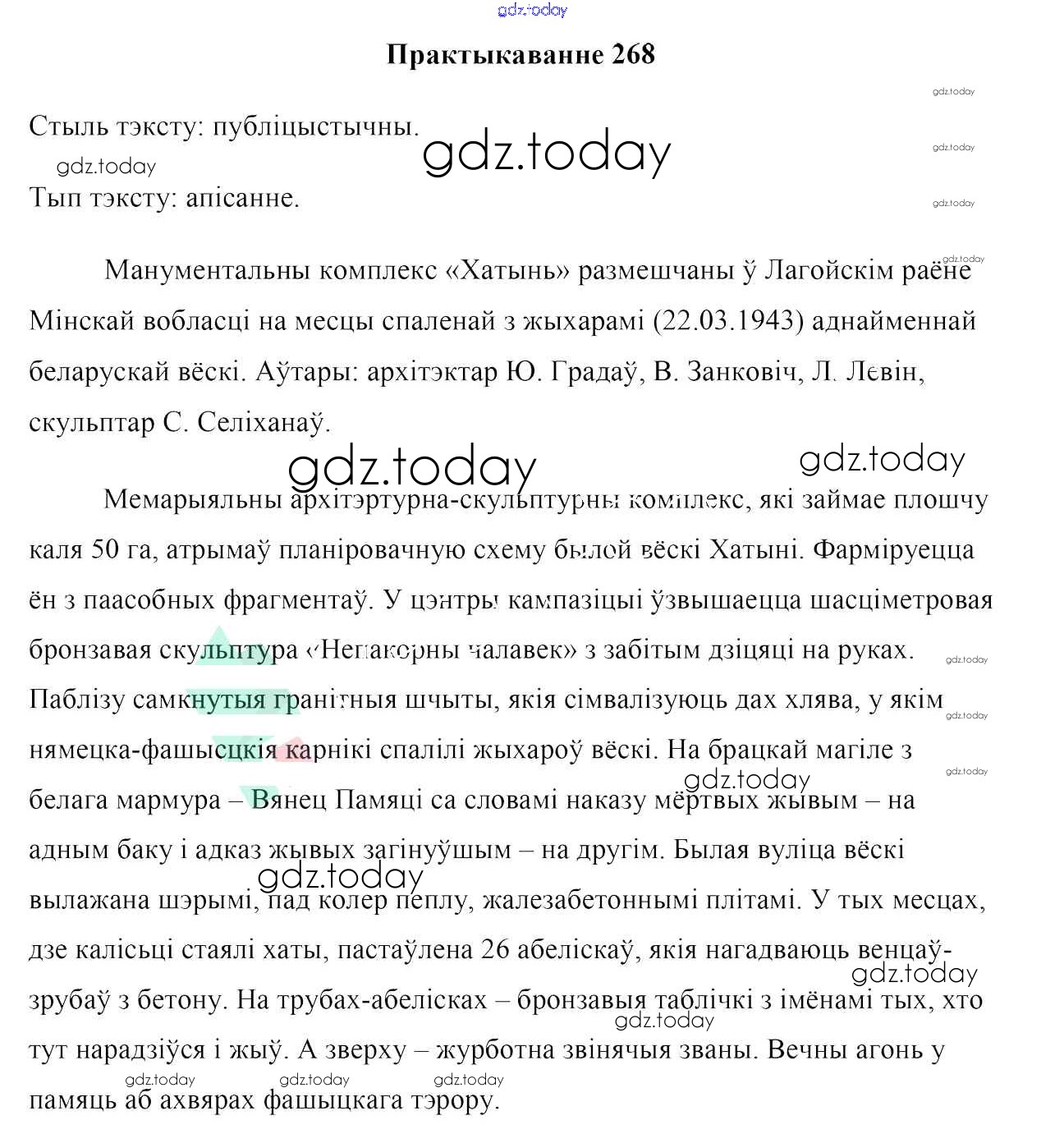На страницах сайта gdz.today вы найдете учебный и вспомогательный материал, направленный на улучшения знаний школьной программы. ГДЗ - онлайн мир знаний Практыкаванні 268 Учебнику по Белорусскому языку для 7 класса Валочка, Язерская Национальный институт образования 2020