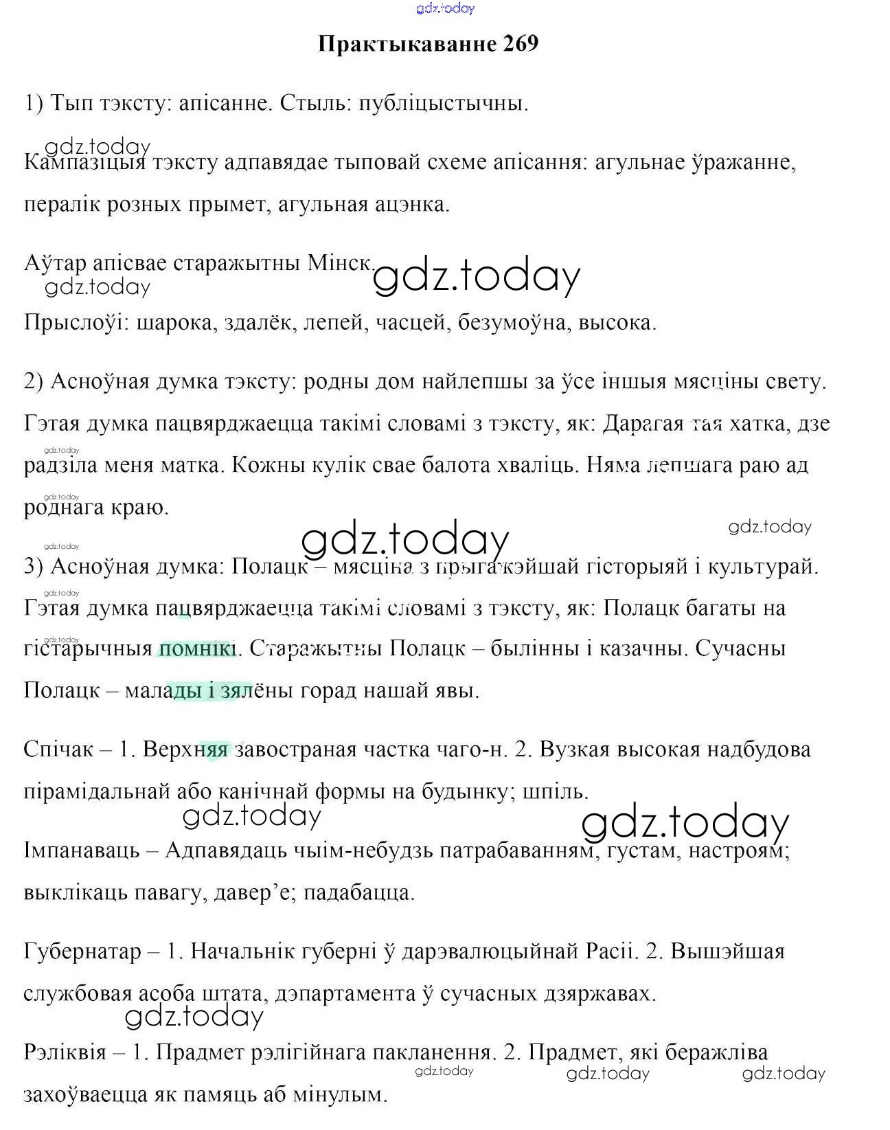 На страницах сайта gdz.today вы найдете учебный и вспомогательный материал, направленный на улучшения знаний школьной программы. ГДЗ - онлайн мир знаний Практыкаванні 269 Учебнику по Белорусскому языку для 7 класса Валочка, Язерская Национальный институт образования 2020