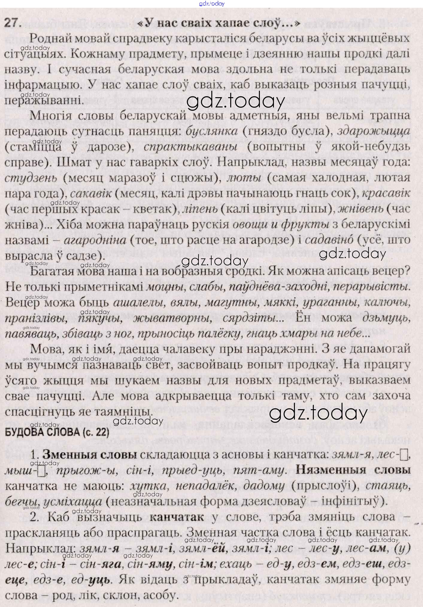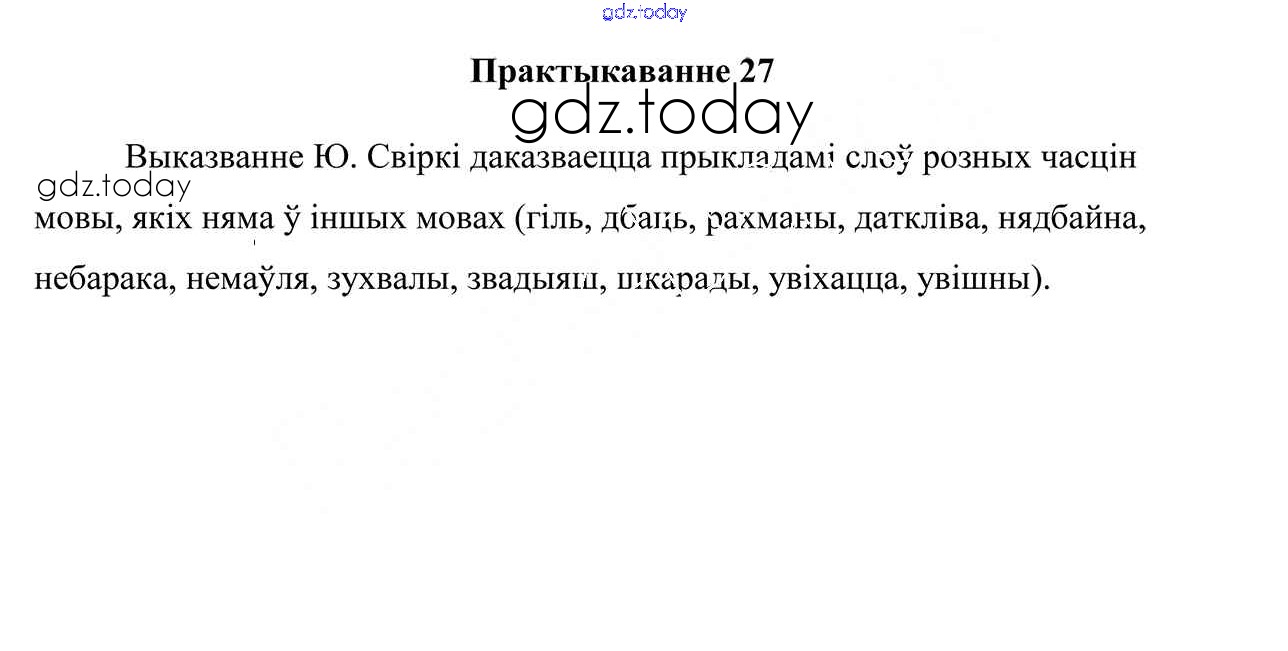 На страницах сайта gdz.today вы найдете учебный и вспомогательный материал, направленный на улучшения знаний школьной программы. ГДЗ - онлайн мир знаний Практыкаванні 27 Учебнику по Белорусскому языку для 7 класса Валочка, Язерская Национальный институт образования 2020