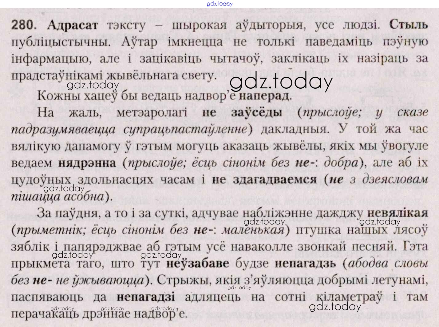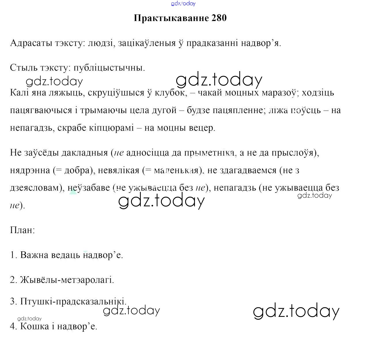На страницах сайта gdz.today вы найдете учебный и вспомогательный материал, направленный на улучшения знаний школьной программы. ГДЗ - онлайн мир знаний Практыкаванні 280 Учебнику по Белорусскому языку для 7 класса Валочка, Язерская Национальный институт образования 2020