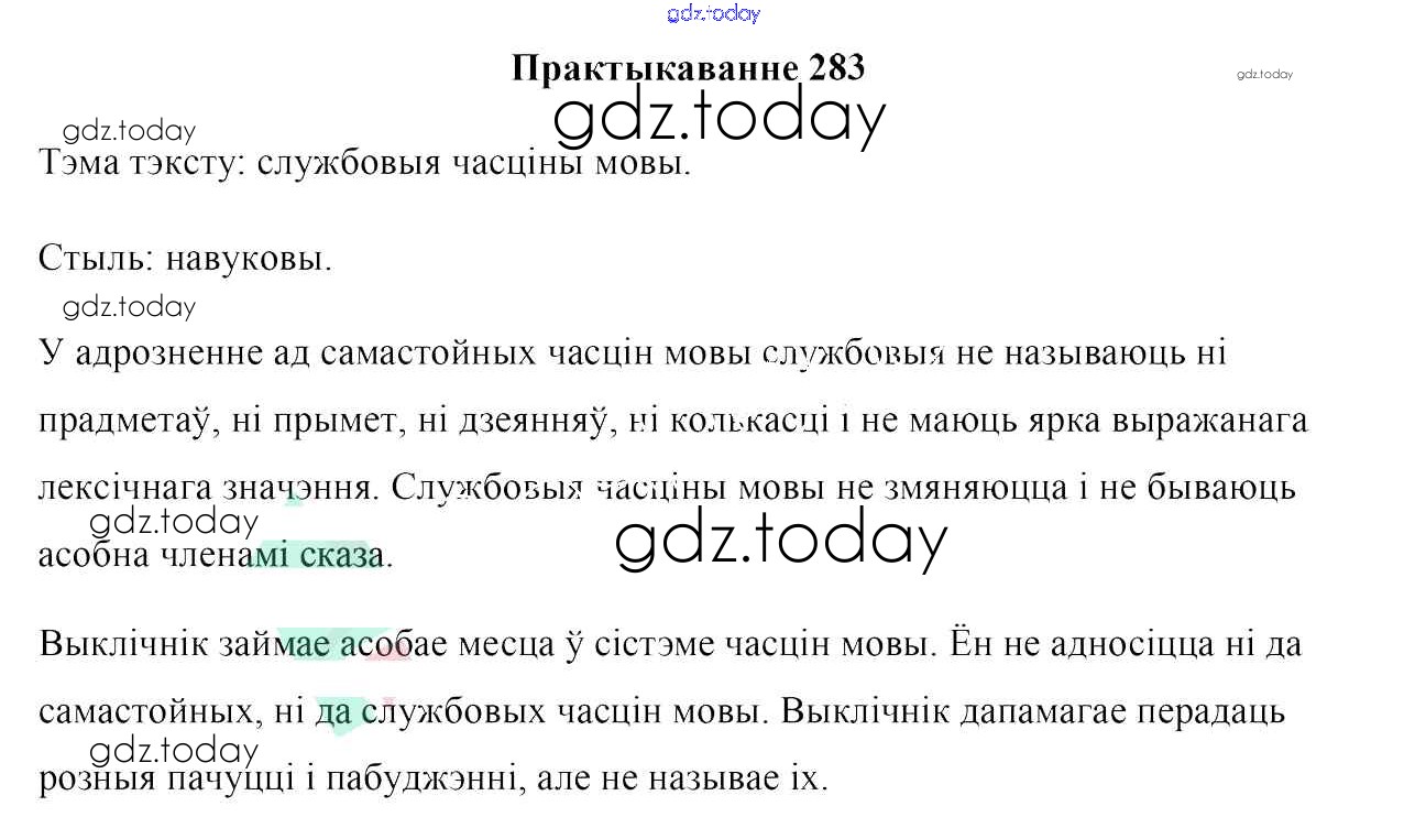 На страницах сайта gdz.today вы найдете учебный и вспомогательный материал, направленный на улучшения знаний школьной программы. ГДЗ - онлайн мир знаний Практыкаванні 283 Учебнику по Белорусскому языку для 7 класса Валочка, Язерская Национальный институт образования 2020