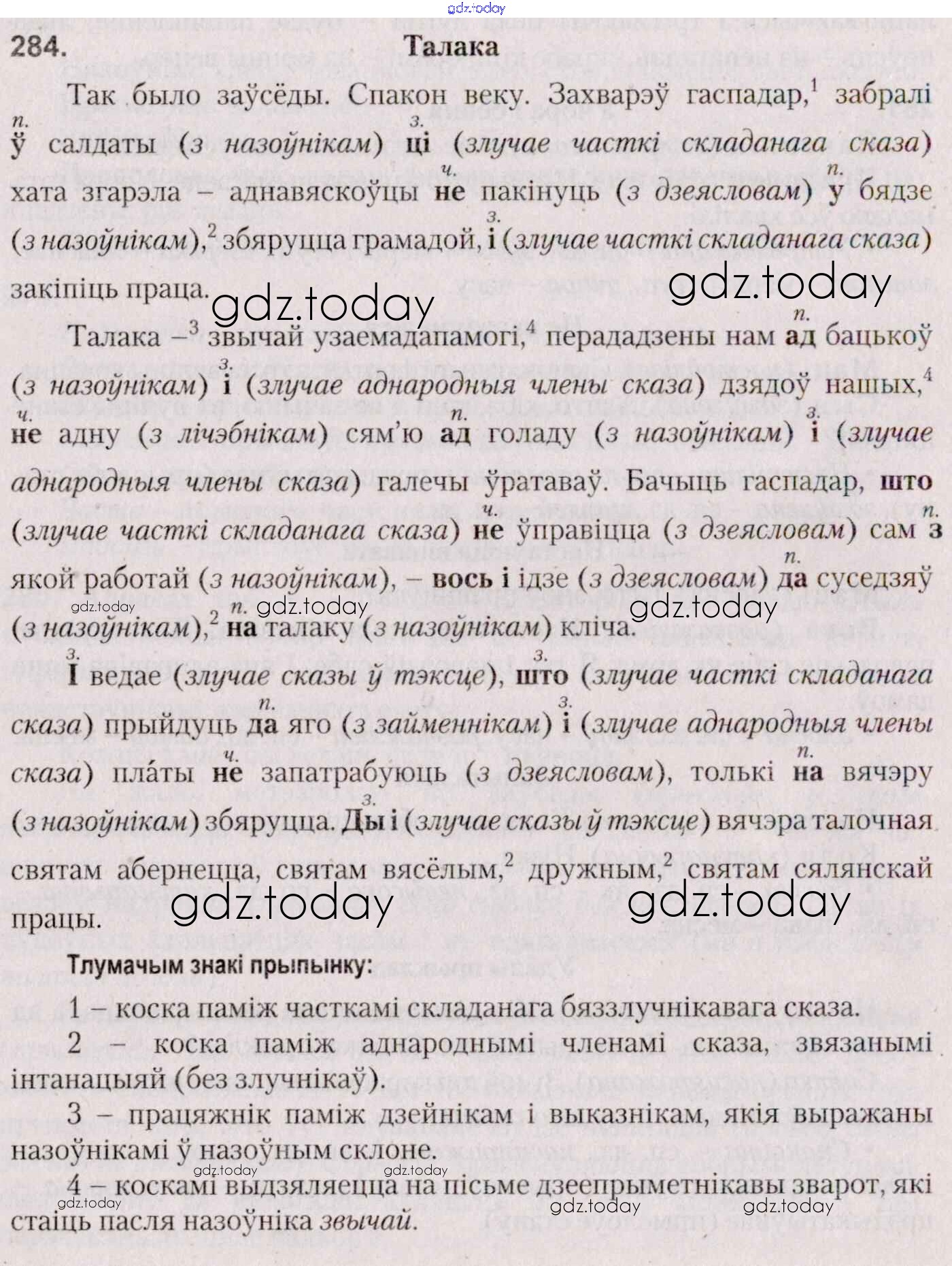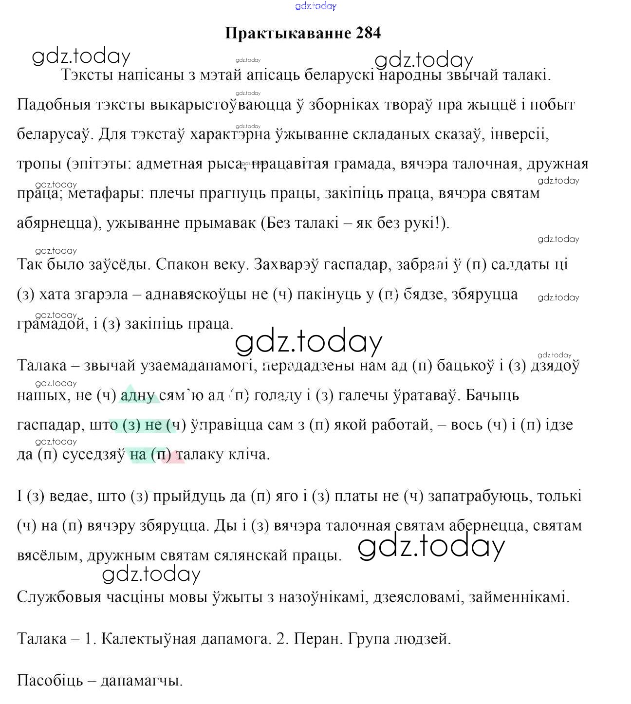 На страницах сайта gdz.today вы найдете учебный и вспомогательный материал, направленный на улучшения знаний школьной программы. ГДЗ - онлайн мир знаний Практыкаванні 284 Учебнику по Белорусскому языку для 7 класса Валочка, Язерская Национальный институт образования 2020