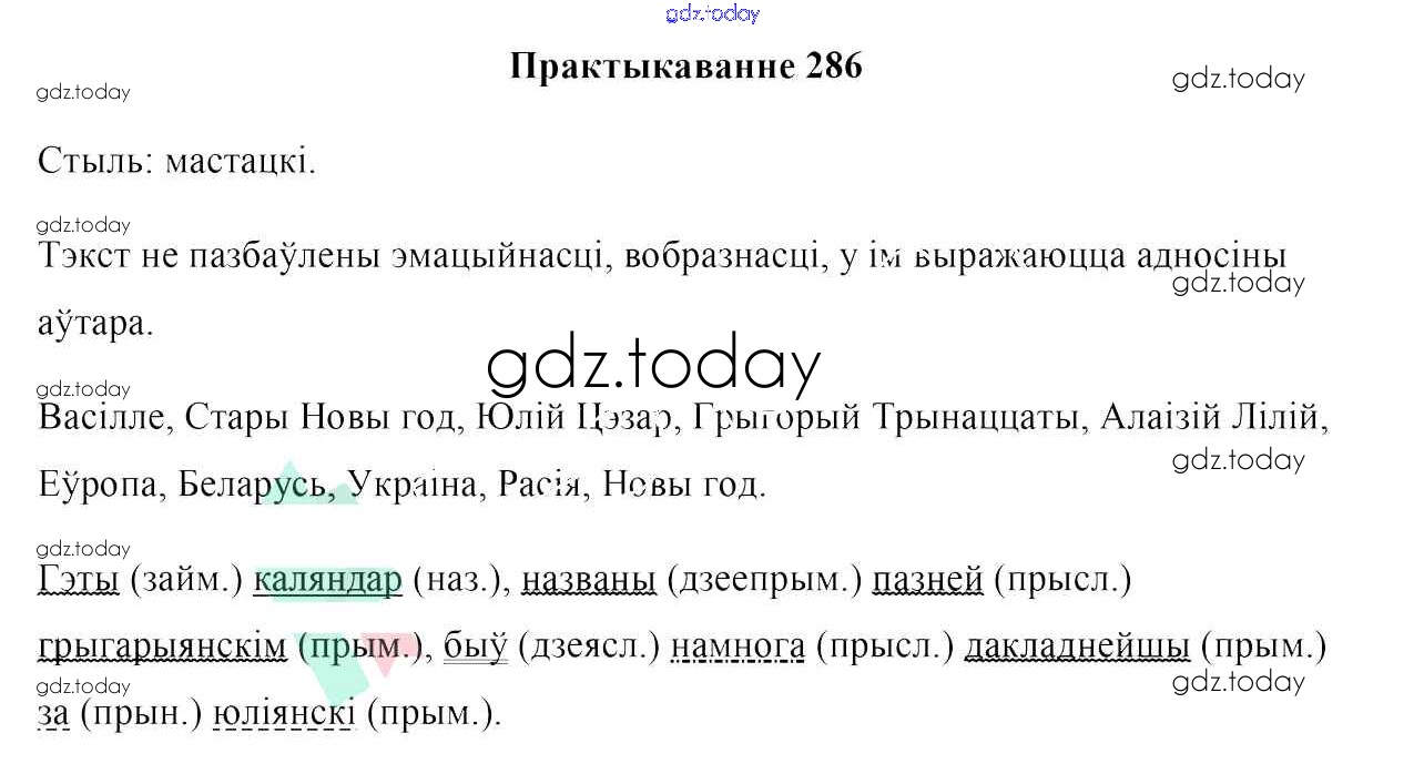 На страницах сайта gdz.today вы найдете учебный и вспомогательный материал, направленный на улучшения знаний школьной программы. ГДЗ - онлайн мир знаний Практыкаванні 286 Учебнику по Белорусскому языку для 7 класса Валочка, Язерская Национальный институт образования 2020