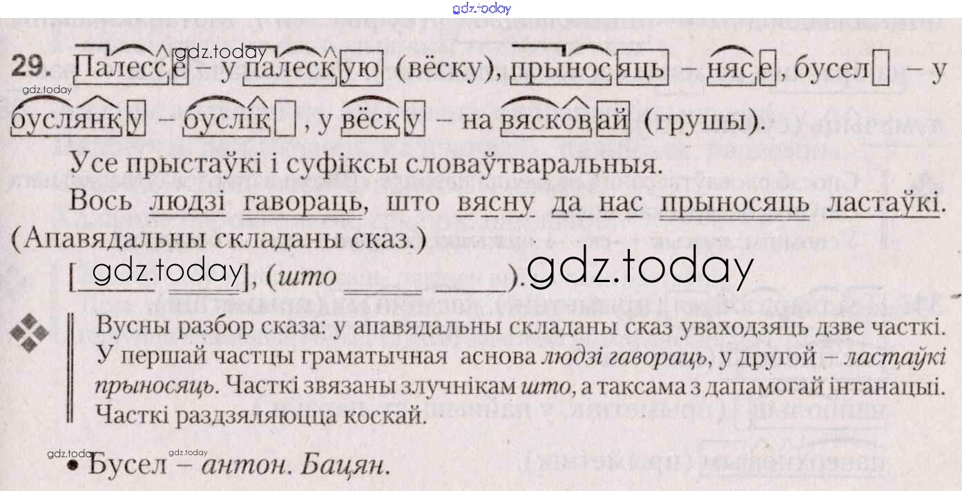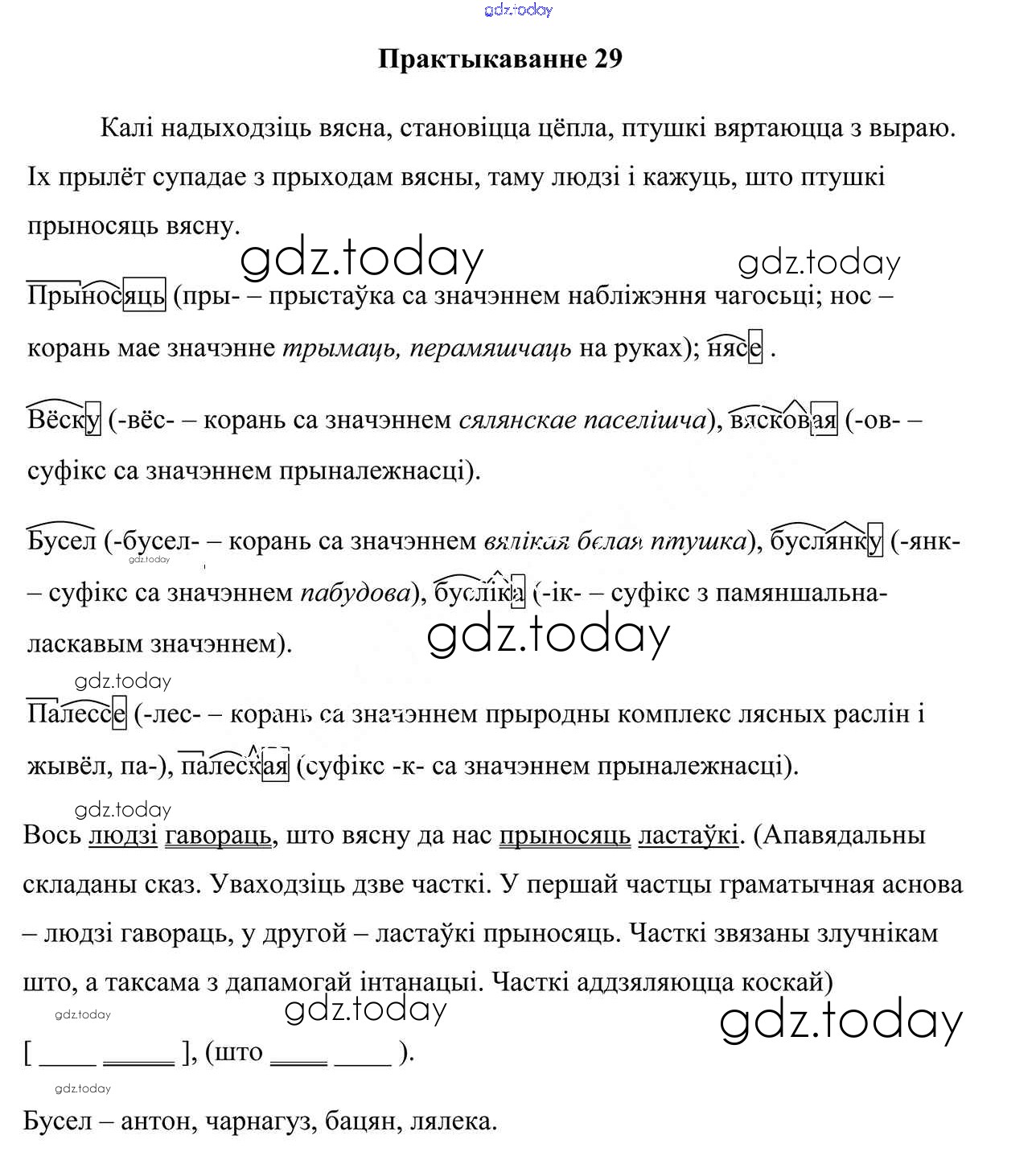 На страницах сайта gdz.today вы найдете учебный и вспомогательный материал, направленный на улучшения знаний школьной программы. ГДЗ - онлайн мир знаний Практыкаванні 29 Учебнику по Белорусскому языку для 7 класса Валочка, Язерская Национальный институт образования 2020