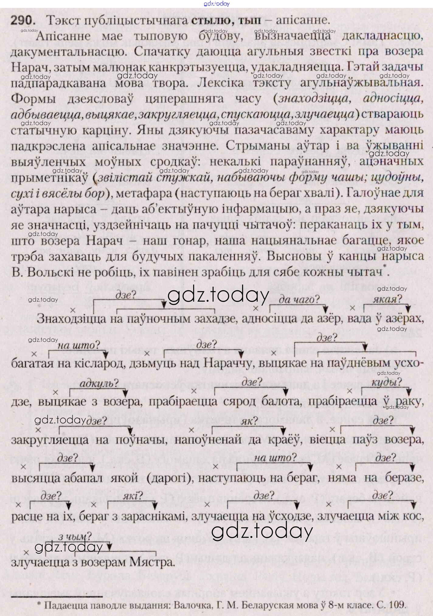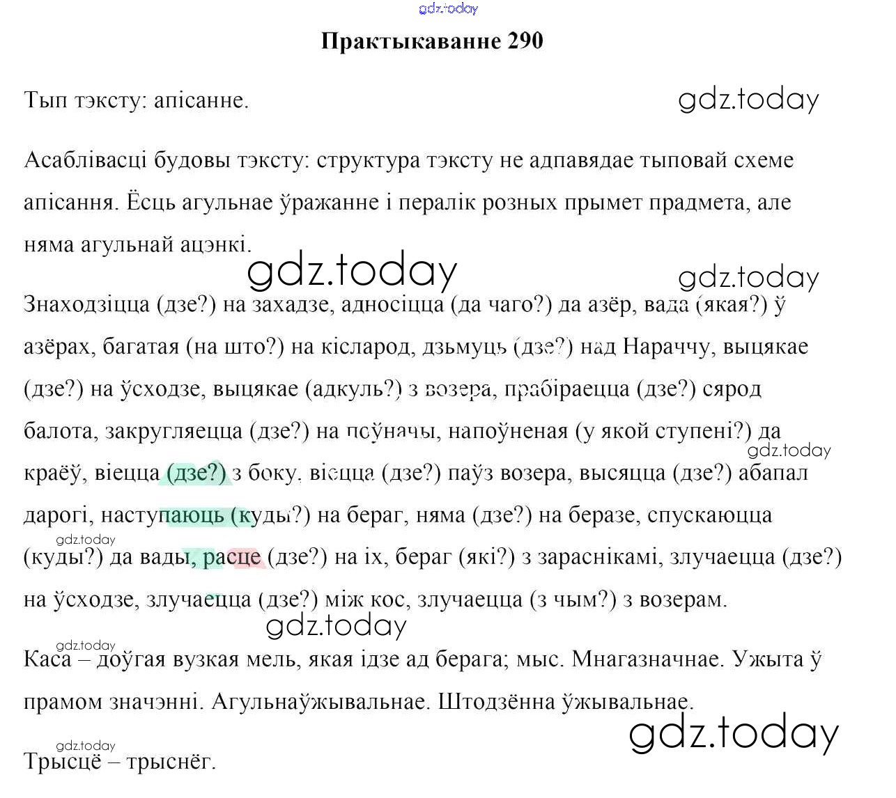 На страницах сайта gdz.today вы найдете учебный и вспомогательный материал, направленный на улучшения знаний школьной программы. ГДЗ - онлайн мир знаний Практыкаванні 290 Учебнику по Белорусскому языку для 7 класса Валочка, Язерская Национальный институт образования 2020