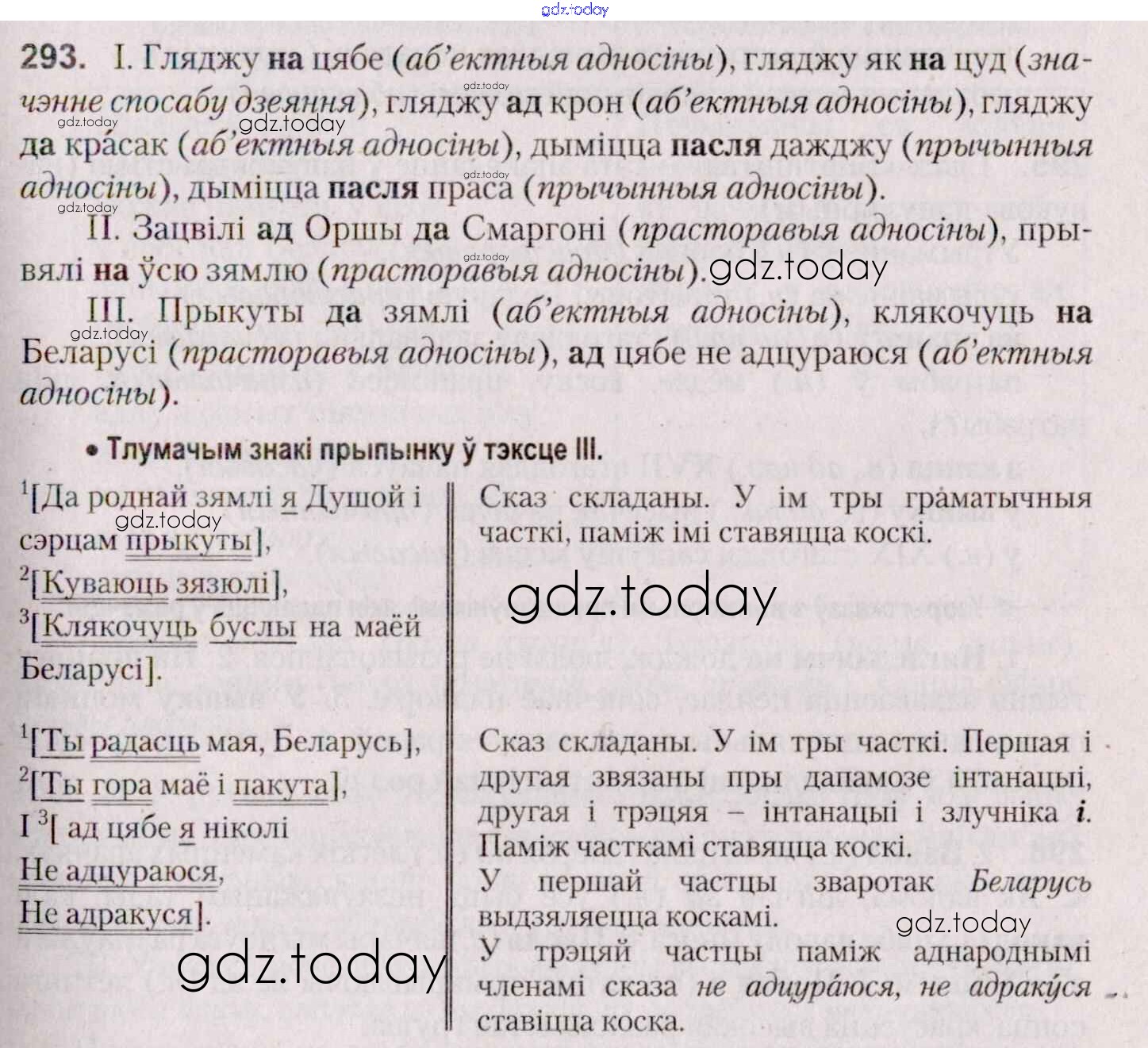 На страницах сайта gdz.today вы найдете учебный и вспомогательный материал, направленный на улучшения знаний школьной программы. ГДЗ - онлайн мир знаний Практыкаванні 293 Учебнику по Белорусскому языку для 7 класса Валочка, Язерская Национальный институт образования 2020
