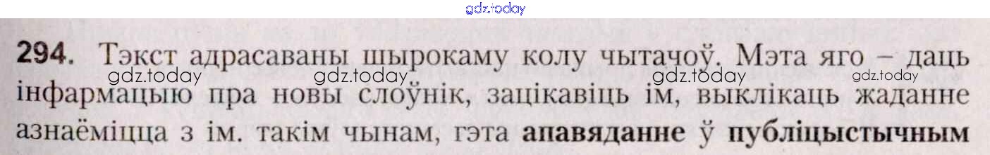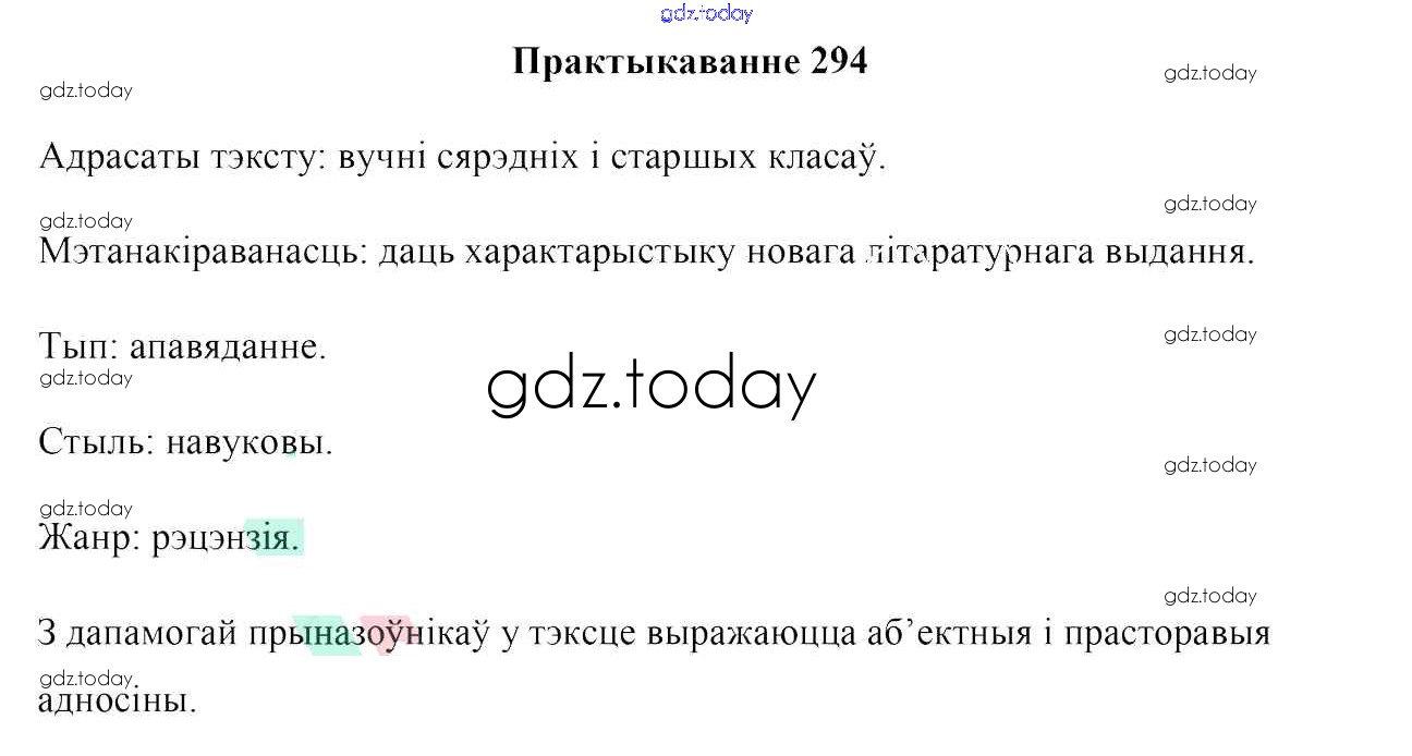 На страницах сайта gdz.today вы найдете учебный и вспомогательный материал, направленный на улучшения знаний школьной программы. ГДЗ - онлайн мир знаний Практыкаванні 294 Учебнику по Белорусскому языку для 7 класса Валочка, Язерская Национальный институт образования 2020