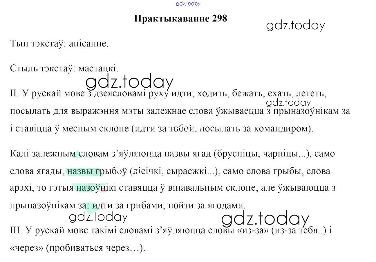 На страницах сайта gdz.today вы найдете учебный и вспомогательный материал, направленный на улучшения знаний школьной программы. ГДЗ - онлайн мир знаний Практыкаванні 298 Учебнику по Белорусскому языку для 7 класса Валочка, Язерская Национальный институт образования 2020