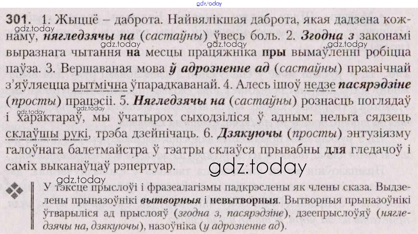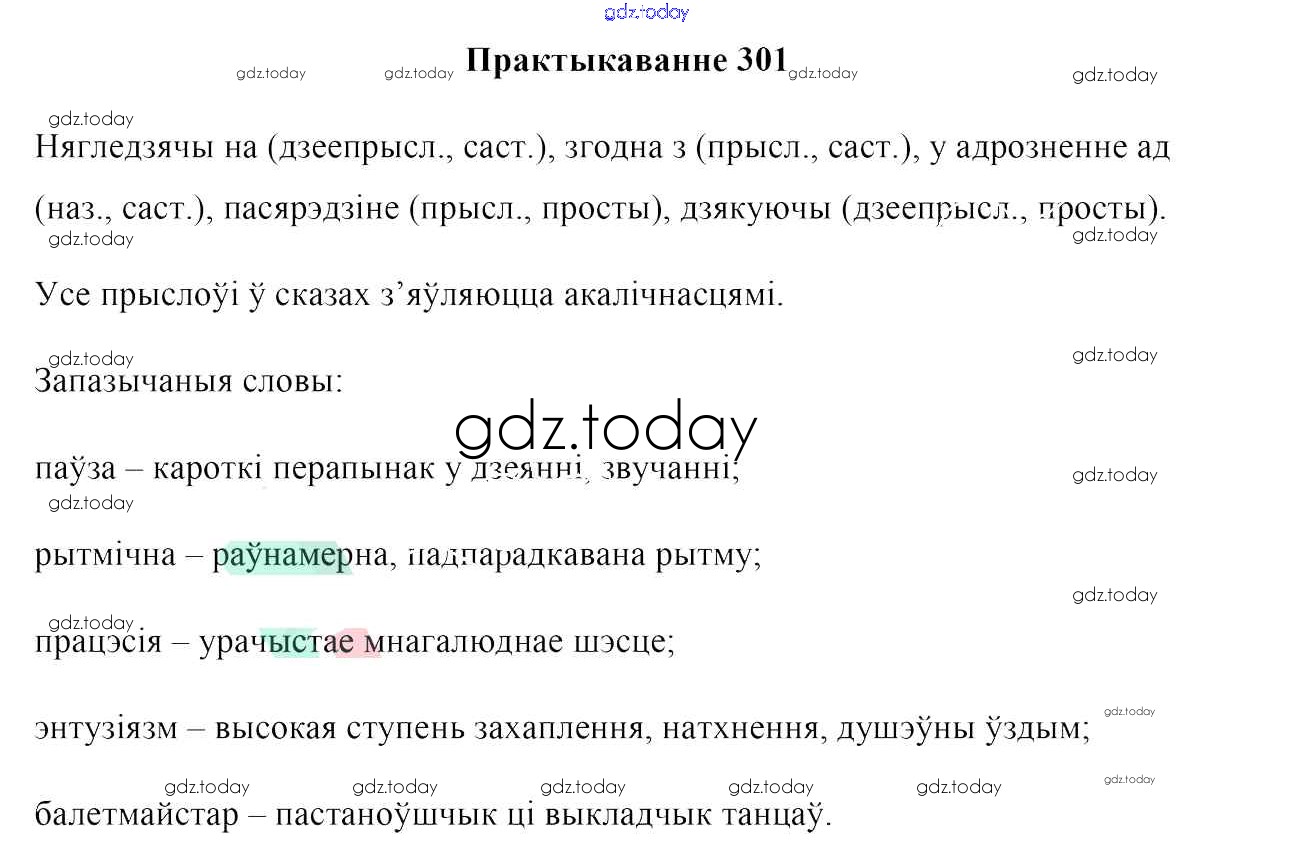 На страницах сайта gdz.today вы найдете учебный и вспомогательный материал, направленный на улучшения знаний школьной программы. ГДЗ - онлайн мир знаний Практыкаванні 301 Учебнику по Белорусскому языку для 7 класса Валочка, Язерская Национальный институт образования 2020