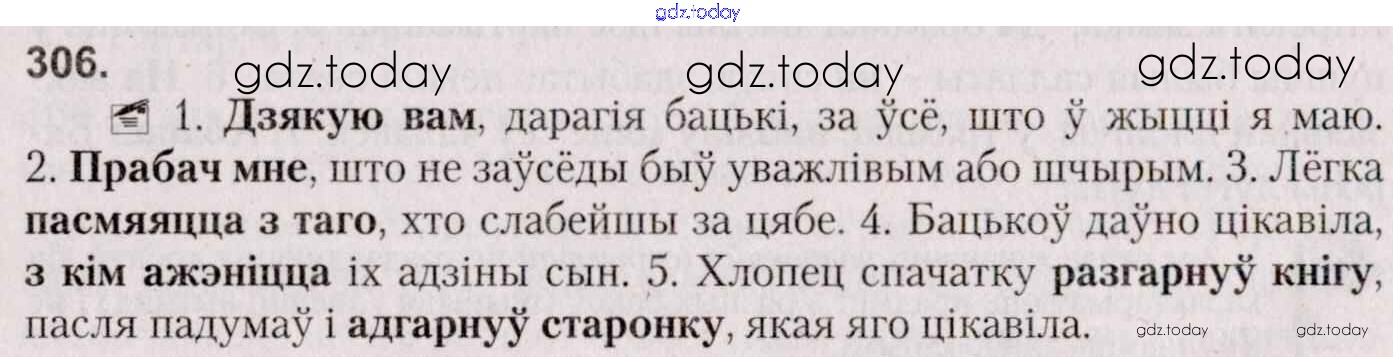 На страницах сайта gdz.today вы найдете учебный и вспомогательный материал, направленный на улучшения знаний школьной программы. ГДЗ - онлайн мир знаний Практыкаванні 306 Учебнику по Белорусскому языку для 7 класса Валочка, Язерская Национальный институт образования 2020