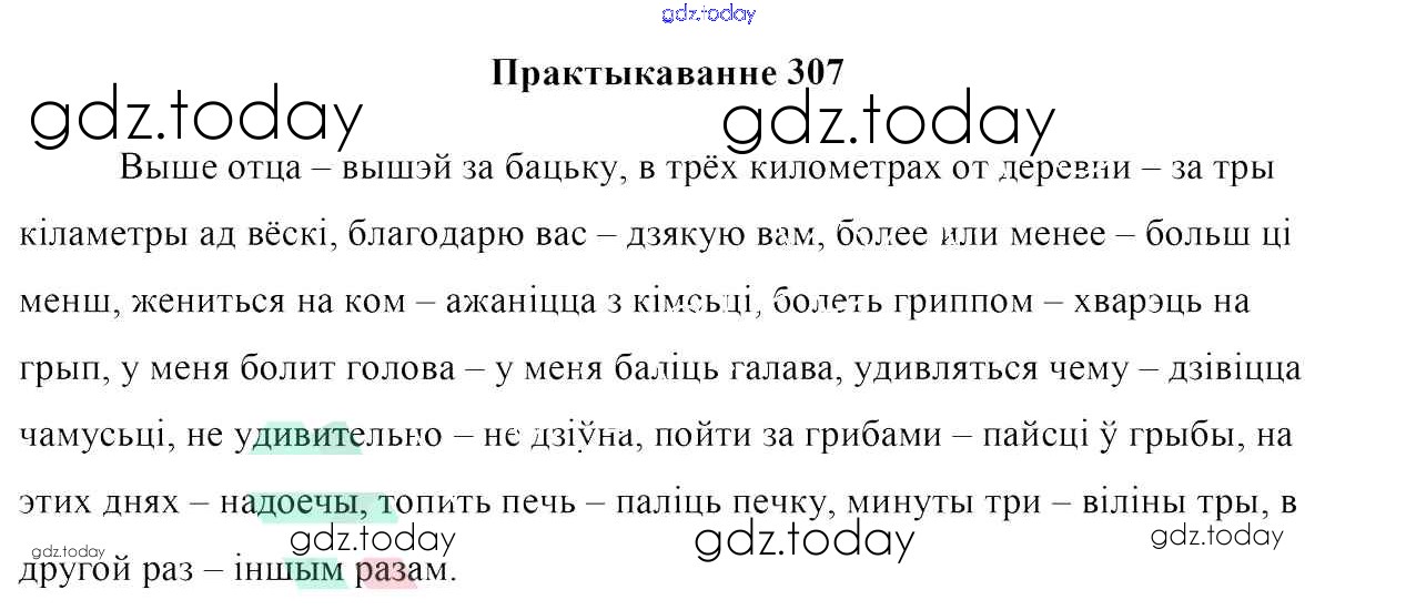 На страницах сайта gdz.today вы найдете учебный и вспомогательный материал, направленный на улучшения знаний школьной программы. ГДЗ - онлайн мир знаний Практыкаванні 307 Учебнику по Белорусскому языку для 7 класса Валочка, Язерская Национальный институт образования 2020