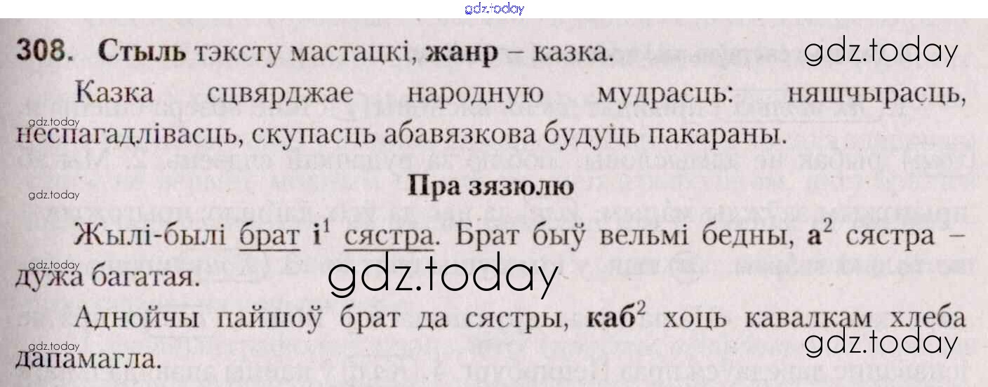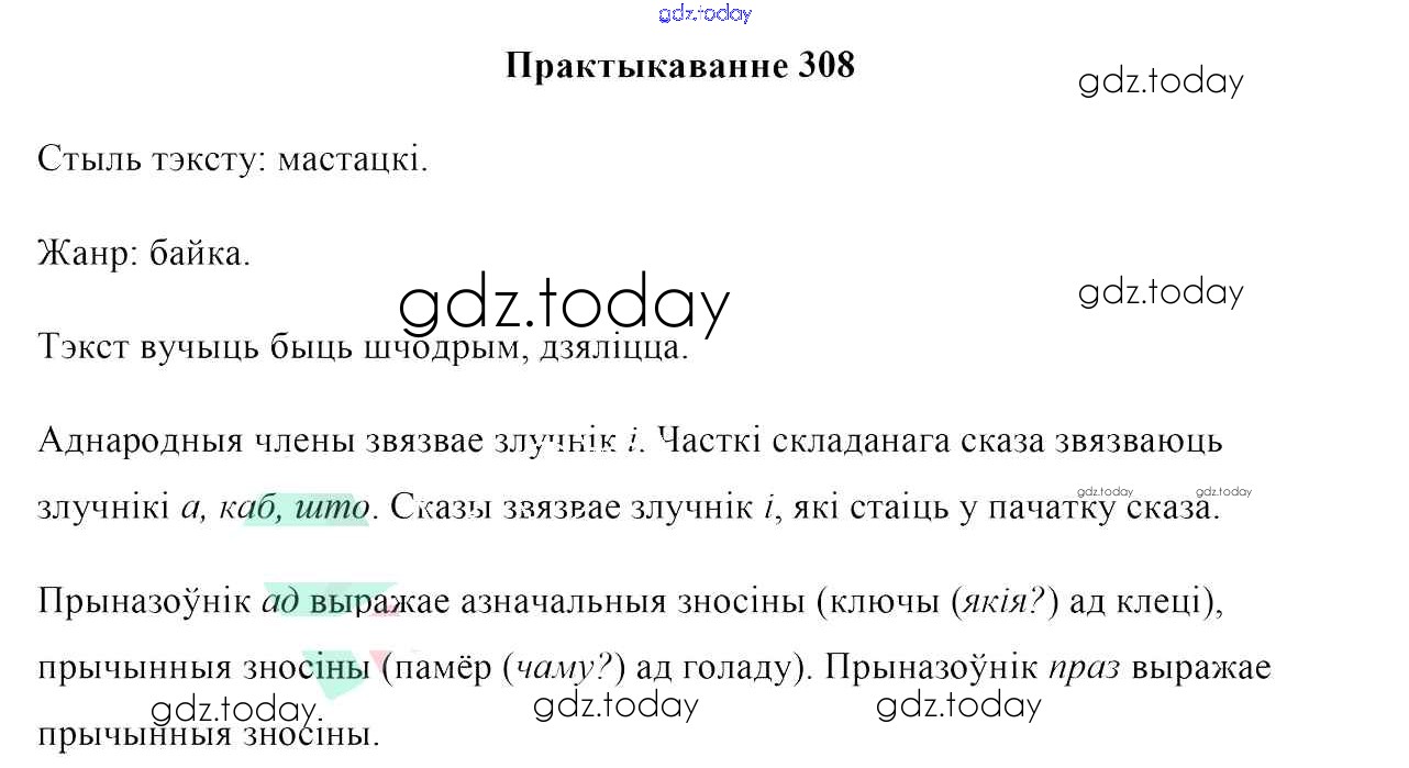 На страницах сайта gdz.today вы найдете учебный и вспомогательный материал, направленный на улучшения знаний школьной программы. ГДЗ - онлайн мир знаний Практыкаванні 308 Учебнику по Белорусскому языку для 7 класса Валочка, Язерская Национальный институт образования 2020