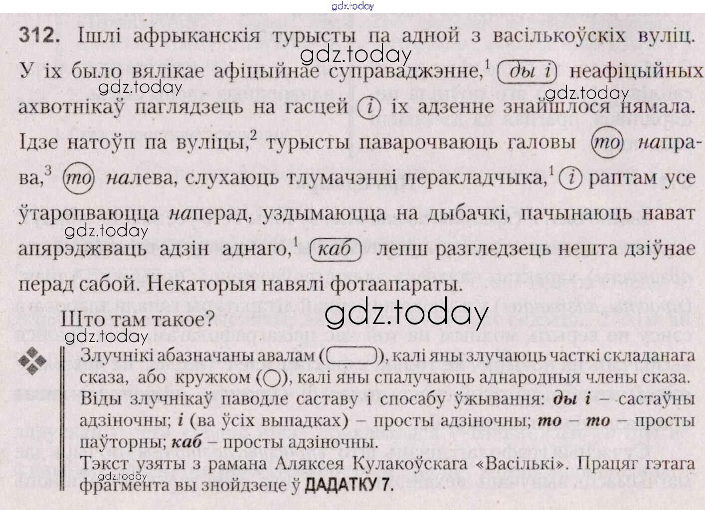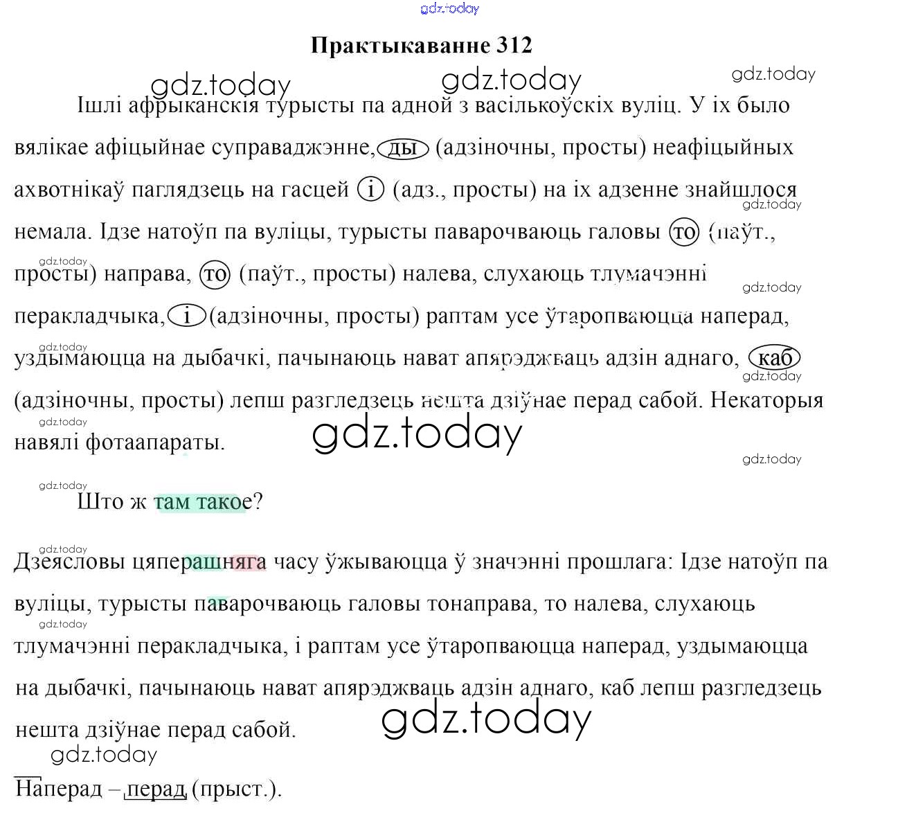 На страницах сайта gdz.today вы найдете учебный и вспомогательный материал, направленный на улучшения знаний школьной программы. ГДЗ - онлайн мир знаний Практыкаванні 312 Учебнику по Белорусскому языку для 7 класса Валочка, Язерская Национальный институт образования 2020