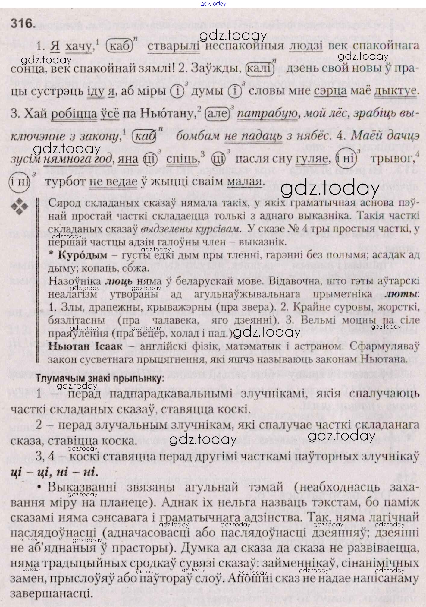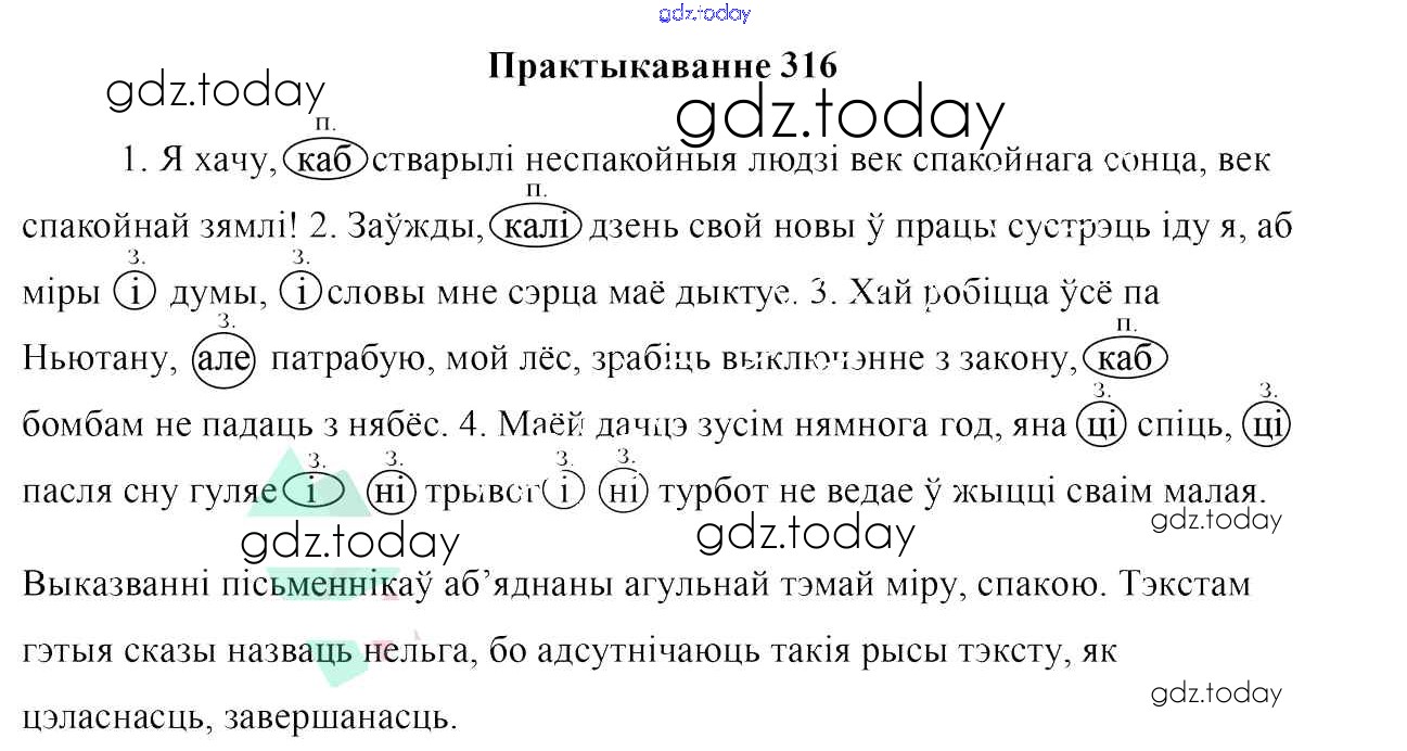 На страницах сайта gdz.today вы найдете учебный и вспомогательный материал, направленный на улучшения знаний школьной программы. ГДЗ - онлайн мир знаний Практыкаванні 316 Учебнику по Белорусскому языку для 7 класса Валочка, Язерская Национальный институт образования 2020