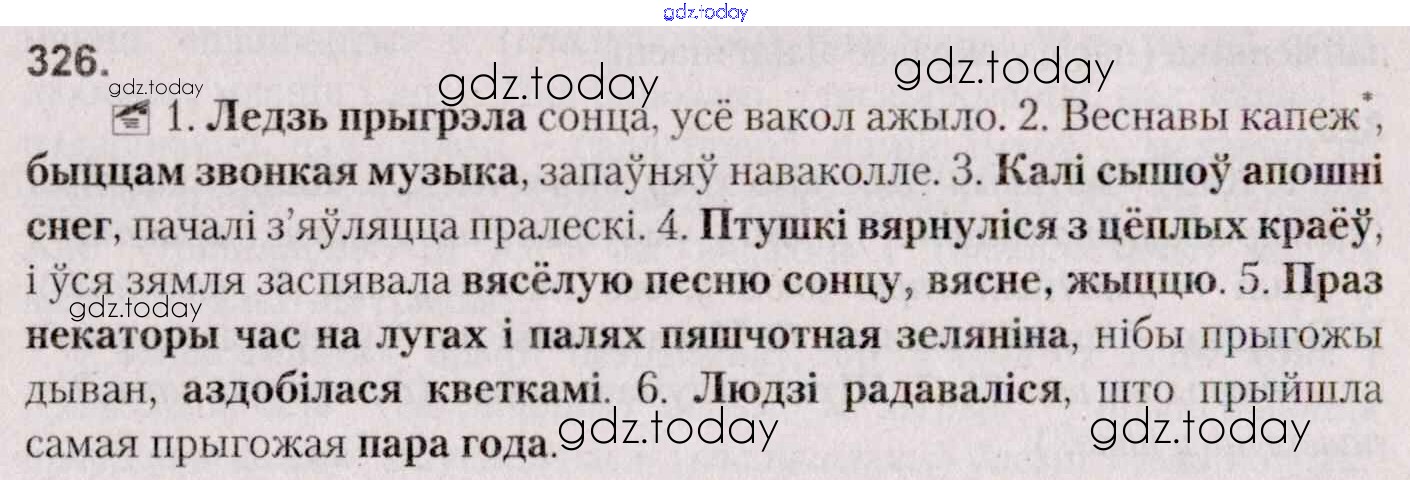 На страницах сайта gdz.today вы найдете учебный и вспомогательный материал, направленный на улучшения знаний школьной программы. ГДЗ - онлайн мир знаний Практыкаванні 326 Учебнику по Белорусскому языку для 7 класса Валочка, Язерская Национальный институт образования 2020