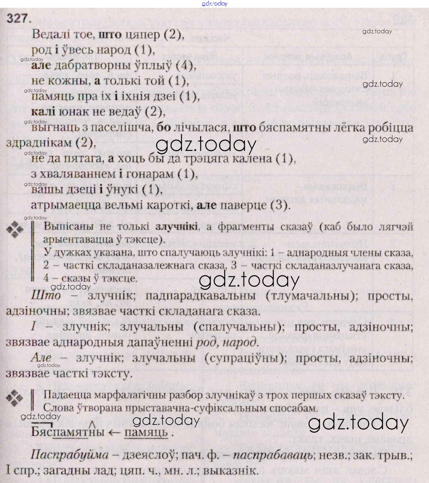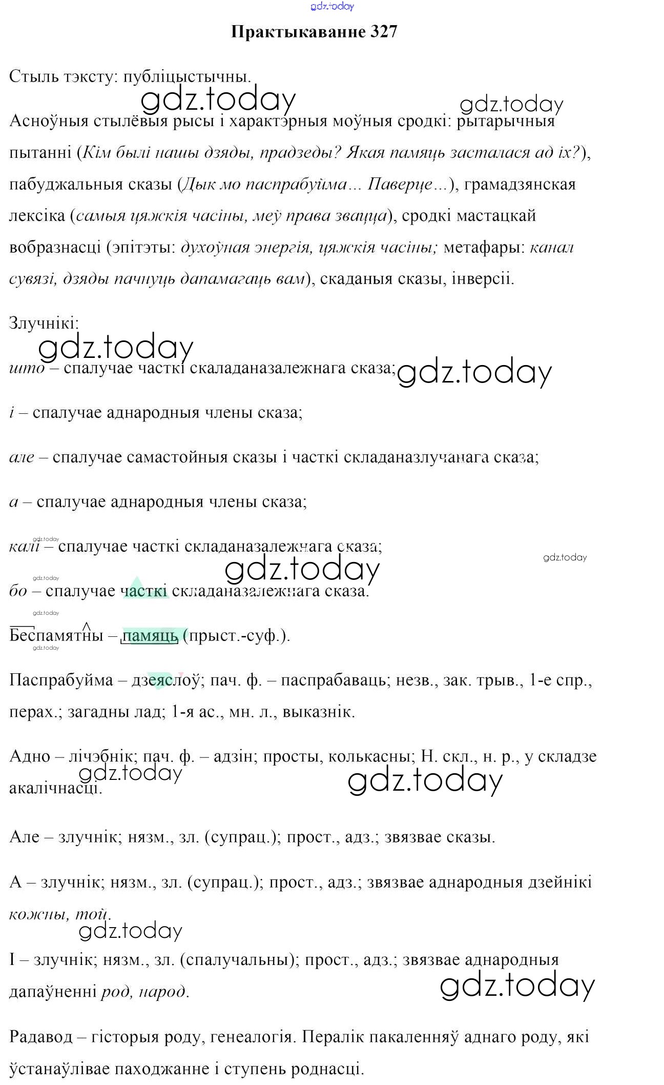 На страницах сайта gdz.today вы найдете учебный и вспомогательный материал, направленный на улучшения знаний школьной программы. ГДЗ - онлайн мир знаний Практыкаванні 327 Учебнику по Белорусскому языку для 7 класса Валочка, Язерская Национальный институт образования 2020