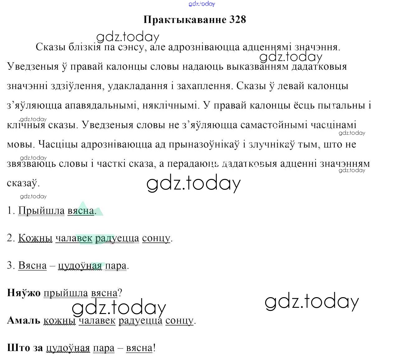 На страницах сайта gdz.today вы найдете учебный и вспомогательный материал, направленный на улучшения знаний школьной программы. ГДЗ - онлайн мир знаний Практыкаванні 328 Учебнику по Белорусскому языку для 7 класса Валочка, Язерская Национальный институт образования 2020