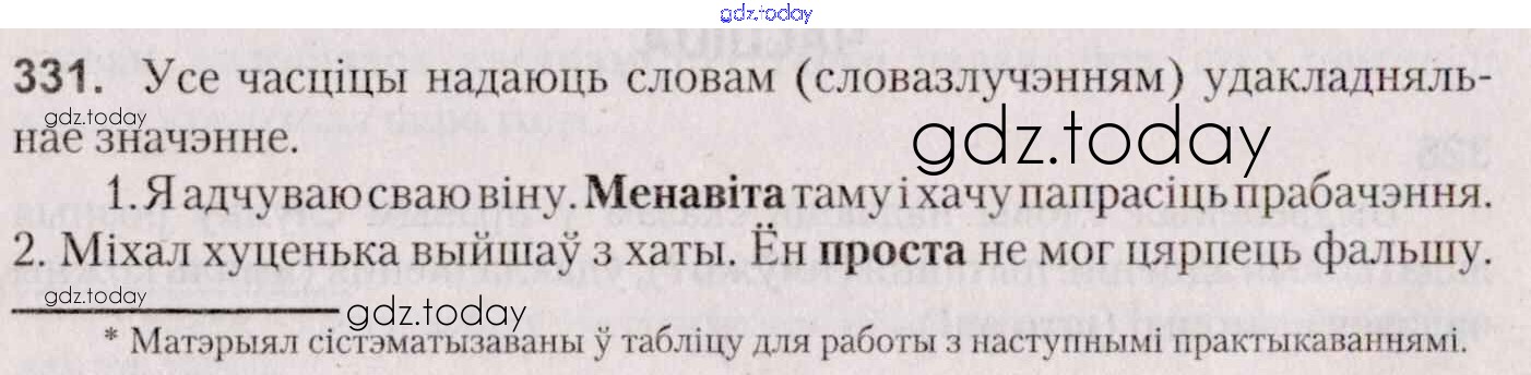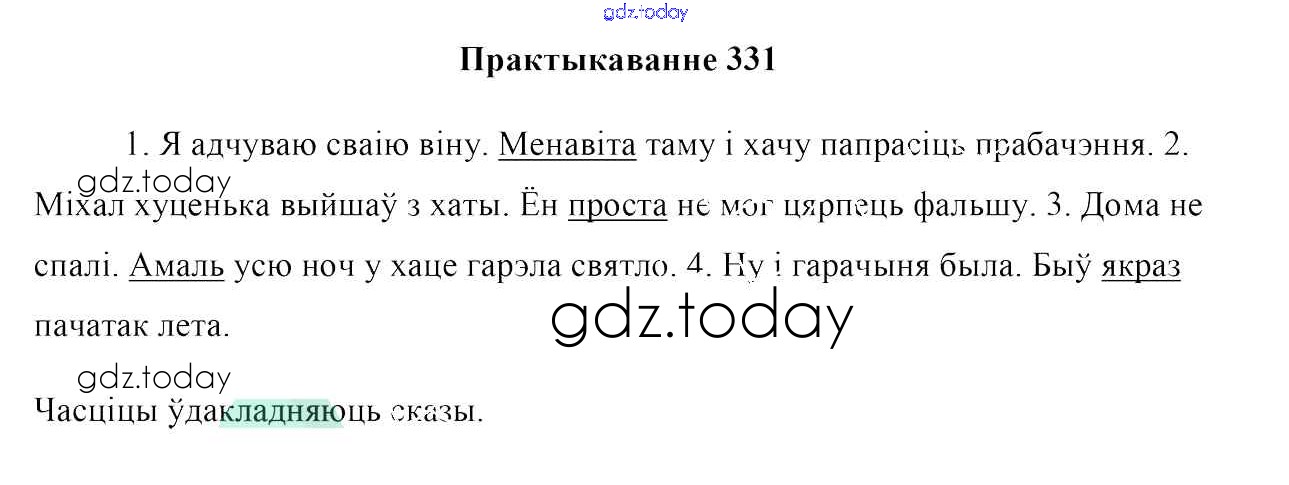На страницах сайта gdz.today вы найдете учебный и вспомогательный материал, направленный на улучшения знаний школьной программы. ГДЗ - онлайн мир знаний Практыкаванні 331 Учебнику по Белорусскому языку для 7 класса Валочка, Язерская Национальный институт образования 2020