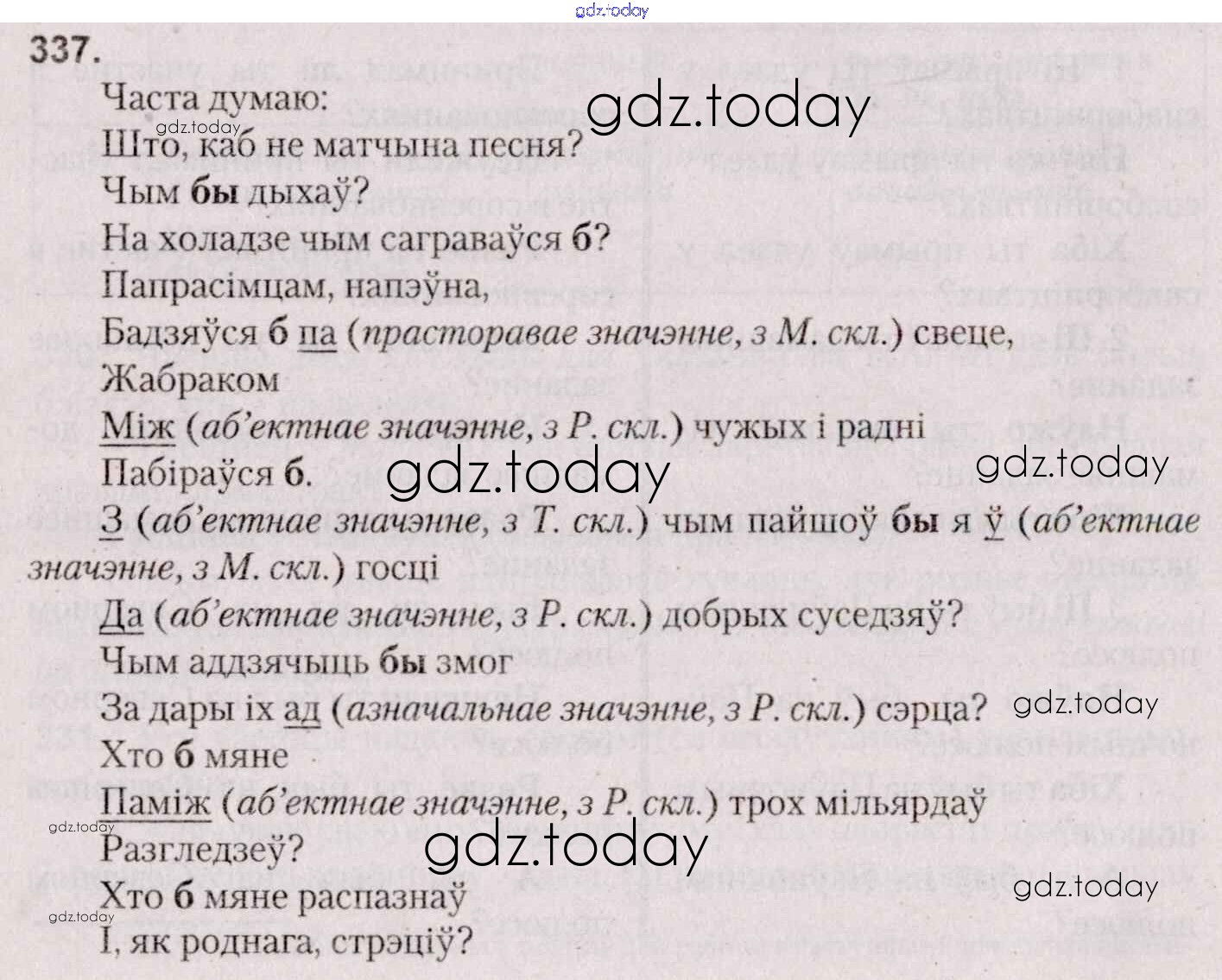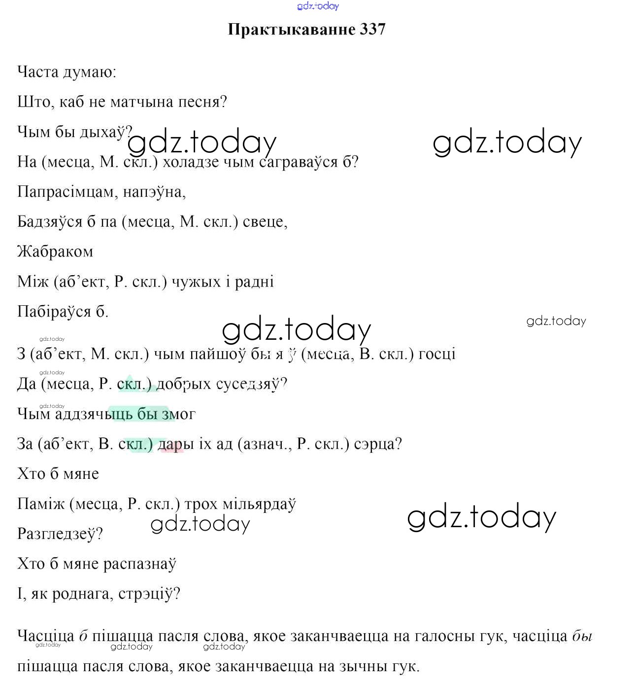 На страницах сайта gdz.today вы найдете учебный и вспомогательный материал, направленный на улучшения знаний школьной программы. ГДЗ - онлайн мир знаний Практыкаванні 337 Учебнику по Белорусскому языку для 7 класса Валочка, Язерская Национальный институт образования 2020
