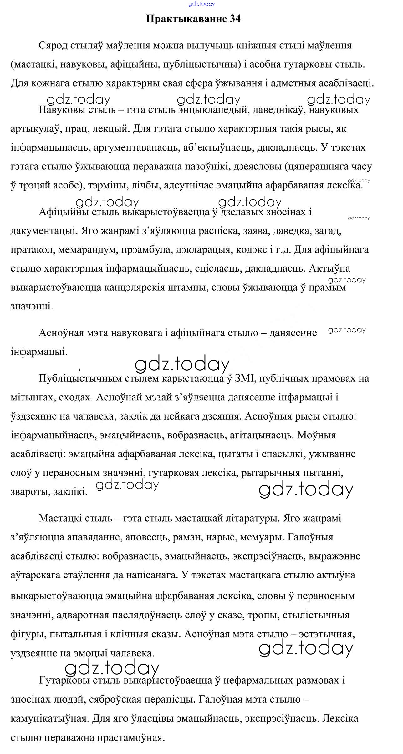 На страницах сайта gdz.today вы найдете учебный и вспомогательный материал, направленный на улучшения знаний школьной программы. ГДЗ - онлайн мир знаний Практыкаванні 34 Учебнику по Белорусскому языку для 7 класса Валочка, Язерская Национальный институт образования 2020