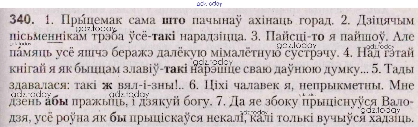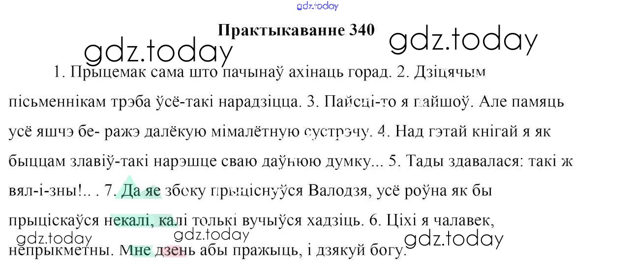 На страницах сайта gdz.today вы найдете учебный и вспомогательный материал, направленный на улучшения знаний школьной программы. ГДЗ - онлайн мир знаний Практыкаванні 340 Учебнику по Белорусскому языку для 7 класса Валочка, Язерская Национальный институт образования 2020