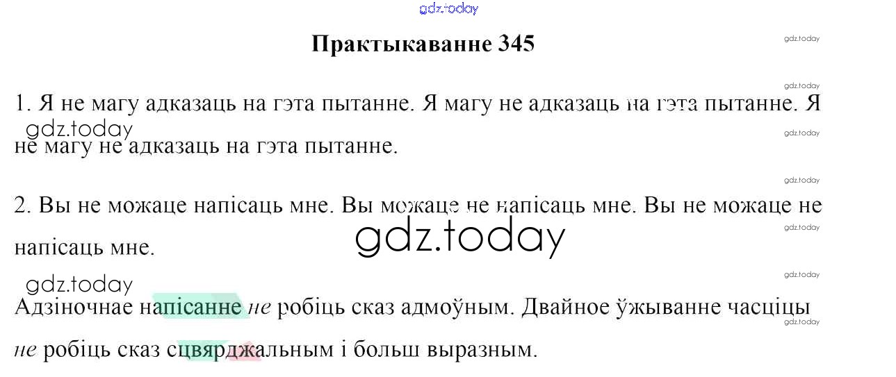 На страницах сайта gdz.today вы найдете учебный и вспомогательный материал, направленный на улучшения знаний школьной программы. ГДЗ - онлайн мир знаний Практыкаванні 345 Учебнику по Белорусскому языку для 7 класса Валочка, Язерская Национальный институт образования 2020