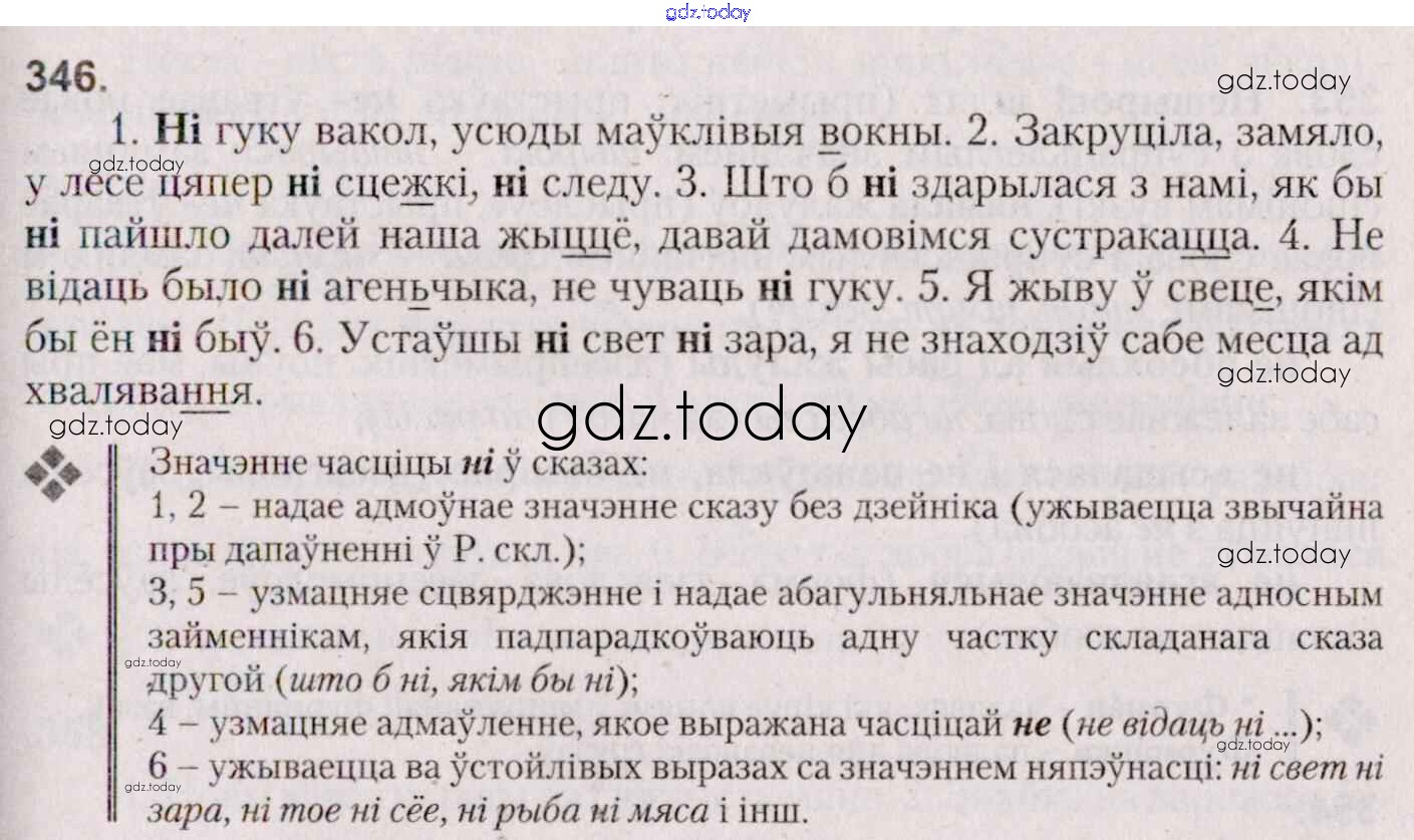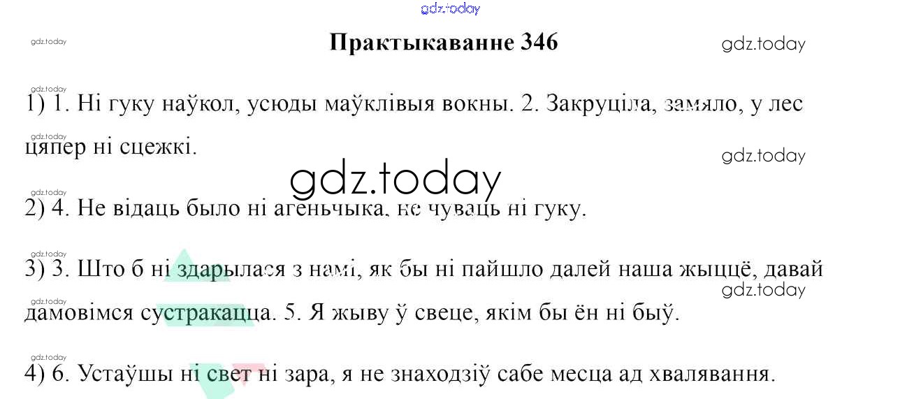На страницах сайта gdz.today вы найдете учебный и вспомогательный материал, направленный на улучшения знаний школьной программы. ГДЗ - онлайн мир знаний Практыкаванні 346 Учебнику по Белорусскому языку для 7 класса Валочка, Язерская Национальный институт образования 2020