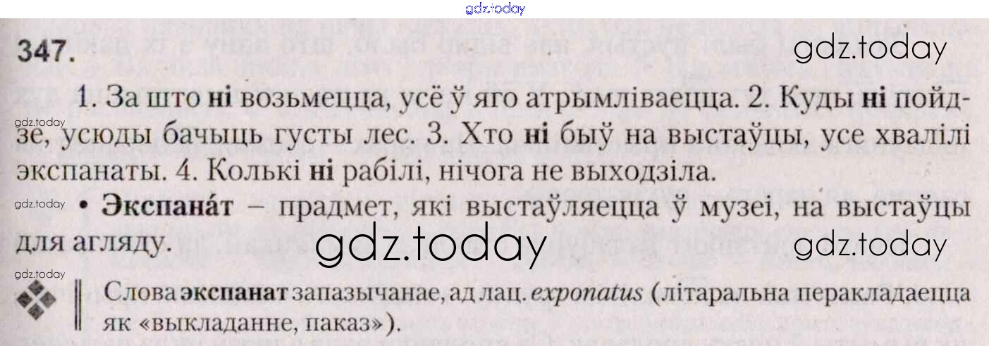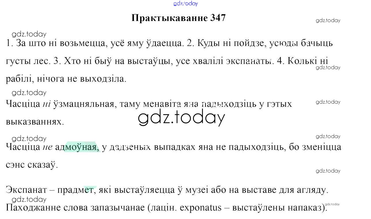 На страницах сайта gdz.today вы найдете учебный и вспомогательный материал, направленный на улучшения знаний школьной программы. ГДЗ - онлайн мир знаний Практыкаванні 347 Учебнику по Белорусскому языку для 7 класса Валочка, Язерская Национальный институт образования 2020