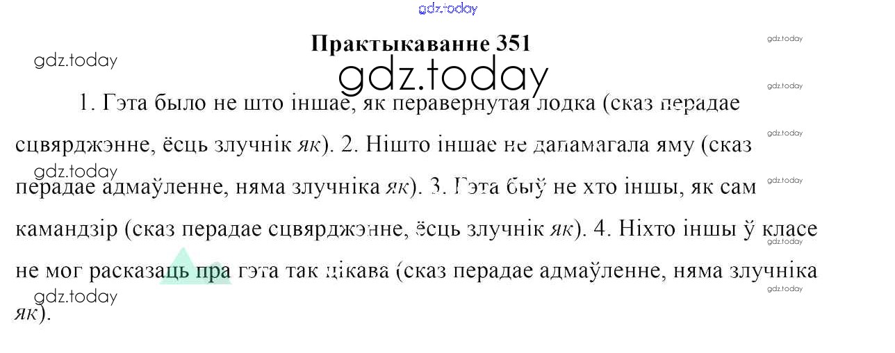 На страницах сайта gdz.today вы найдете учебный и вспомогательный материал, направленный на улучшения знаний школьной программы. ГДЗ - онлайн мир знаний Практыкаванні 351 Учебнику по Белорусскому языку для 7 класса Валочка, Язерская Национальный институт образования 2020